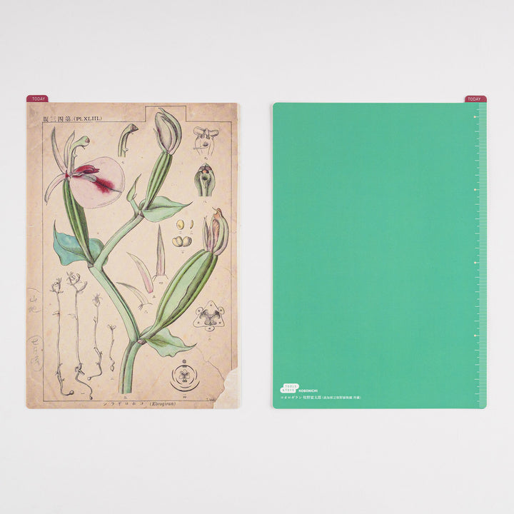 The colors of the back of each pencil board are different, too. The Original size is in yellow reminiscent of dandelions, the Cousin size is green like the stem of the Korogi-ran, and the Weeks size is in purple like a global thistle. One side is labeled by millimeter to act as a metric ruler, and a “Today” tab on the corner marks the current page if you’d like to use it as a bookmark as well.