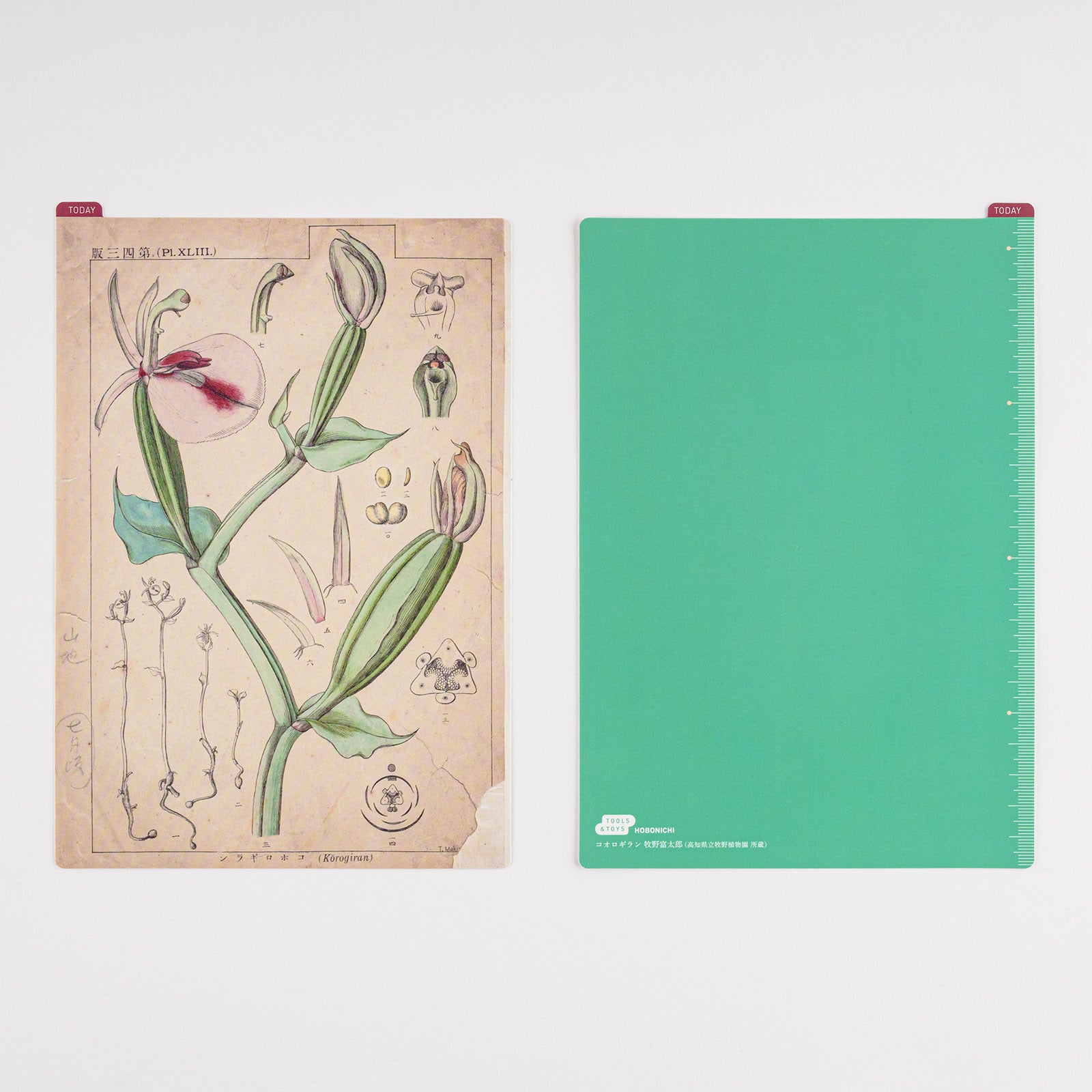 For the A5 Cousin size, a colored botanical illustration of a Korogi-ran is printed alongside memos written in pencil.