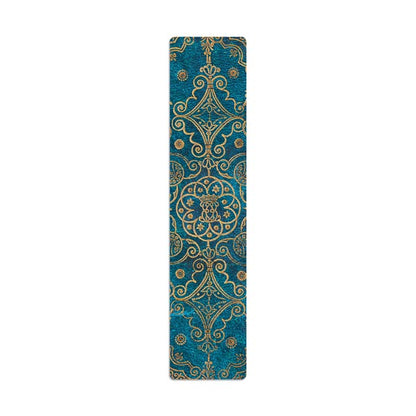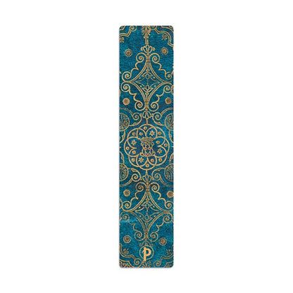 The 1688 edition of L’office de la Semaine Sainte, a Latin liturgical book, was protected by a gold-plated leather binding. Reproduced on our Azure bookmark with a vibrant blue background, the antique design features an elaborate gilt-edged tendril motif.