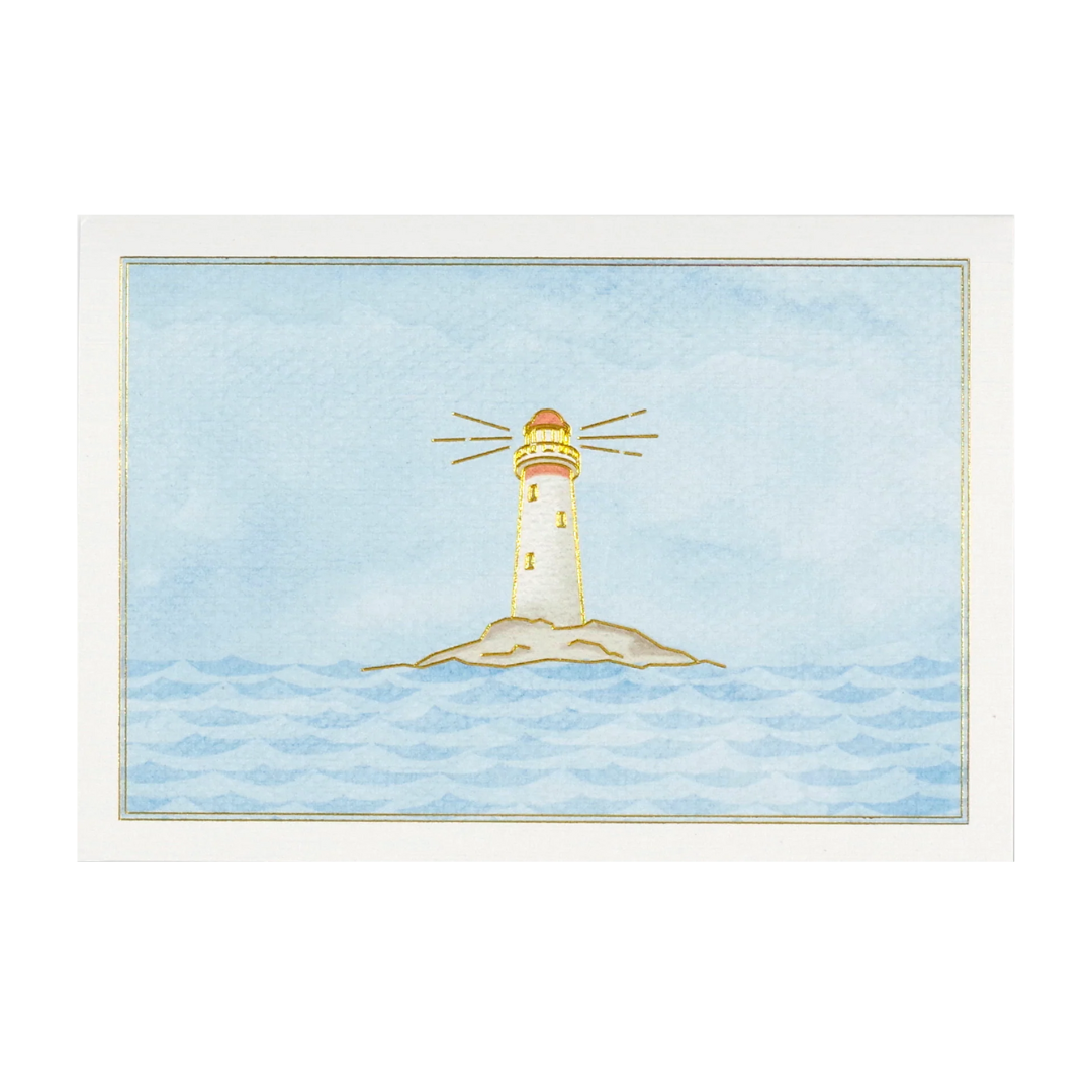 A beautiful set of note cards that feature an adorable illustration of a lighthouse on the outside and they are blank inside so you can write a special message for any occasion.