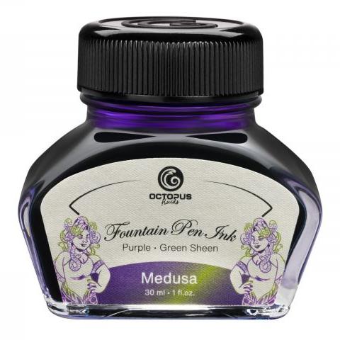Get ready for an almost magical writing experience! The Octopus Fluids Sheen collection offers you a range of enchanting inks with a very special two-tone effect. Each ink is inspired by a mythical creature, be it the fairytale Unicorn, the mysterious Medusa, the enigmatic Djinn or the shy Sea Serpent. The colours of these inks are as magical as their name.