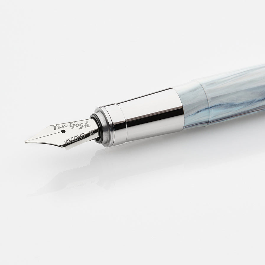 The Van Gogh “Old Vineyard with Peasant Woman” fountain pen is equipped with a personalised steel nib.