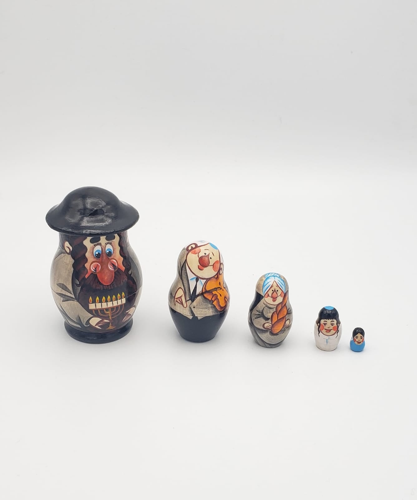 HANDMADE WOODEN "JEWISH RABBI FAMILY" NESTING DOLL (MATRYOSHKA)