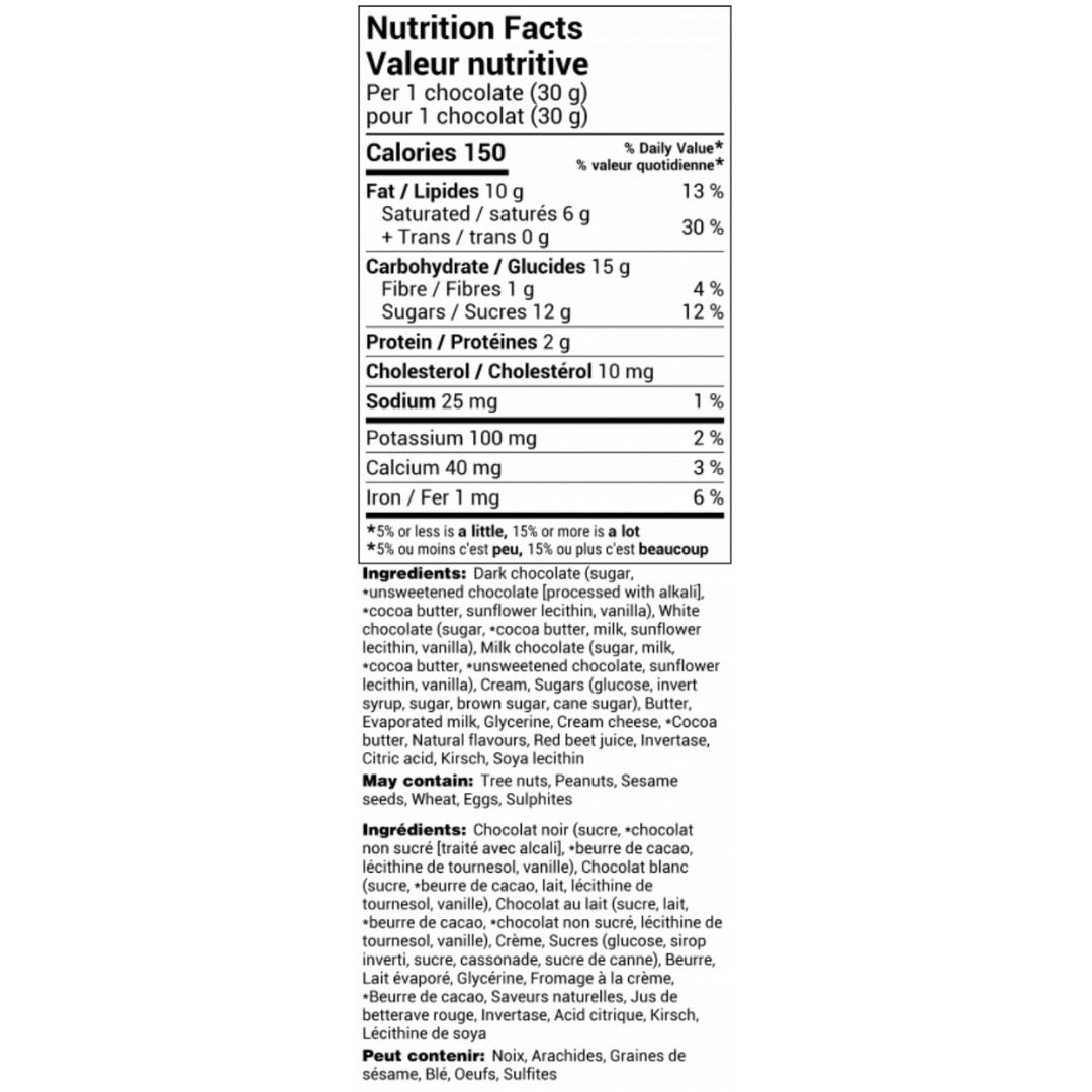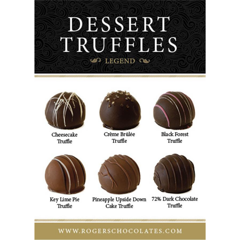 These generously sized truffles feature all natural flavours and were inspired by the traditional desserts that have graced many tables over the years. Flavours include Cheesecake, Creme Brulee, Black Forest, Key Lime Pie, Pineapple Upside Down Cake and 72% Dark Chocolate. This elegant assortment is perfect for sharing with family or friends.