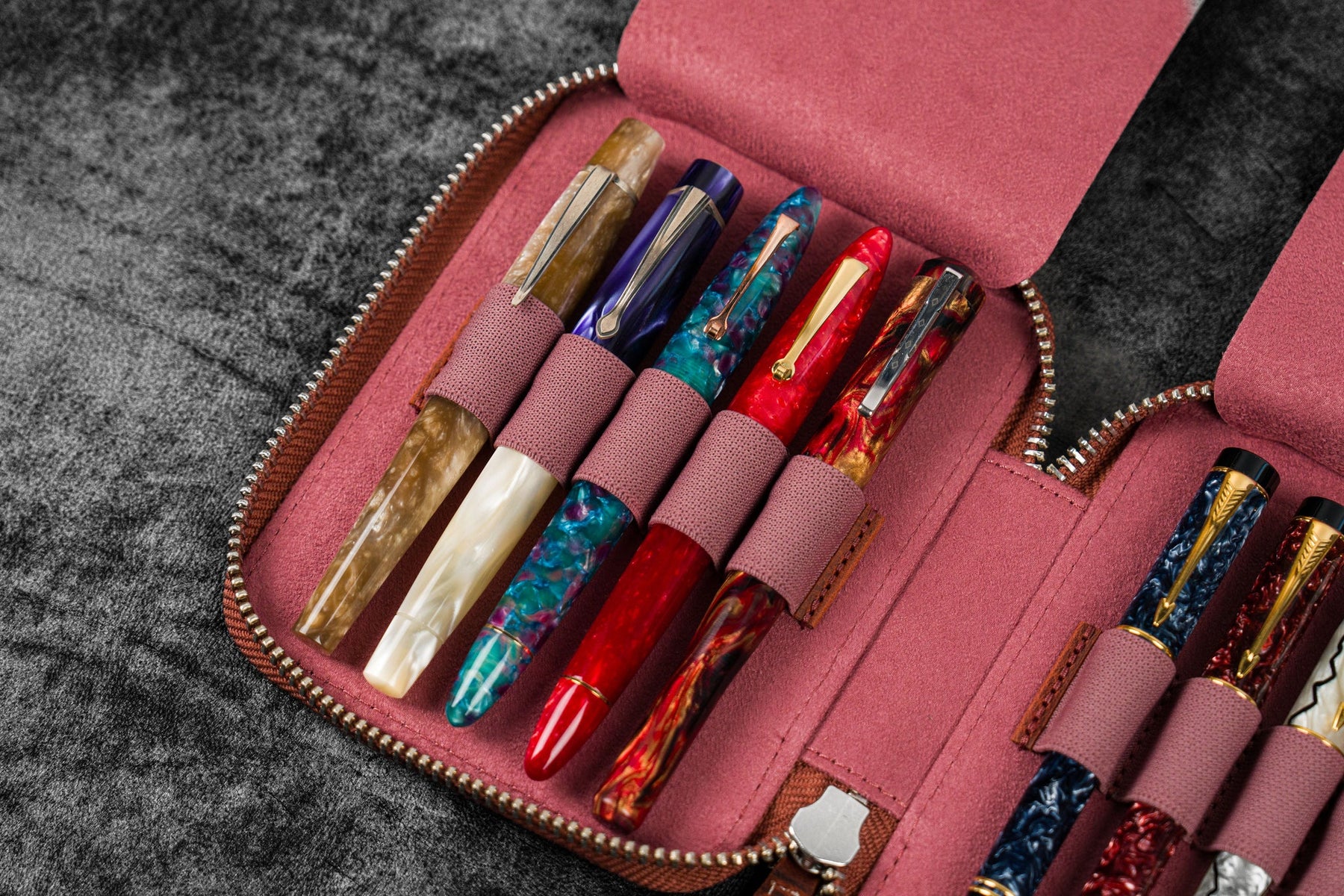 Galen Leather - Leather Zippered 10 Slots Pen Case - C.H. Orange