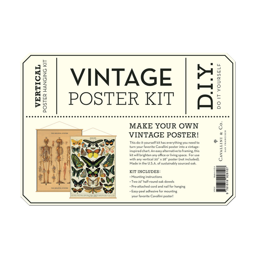 This do it yourself kit has everything you need to turn your favorite Cavallini poster into a vintage inspired chart. An easy alternative to framing, this kit will brighten any office or living space. For use with any 28" x 20" poster (not included). Made in the USA of sustainably sourced oak. Kit Includes: