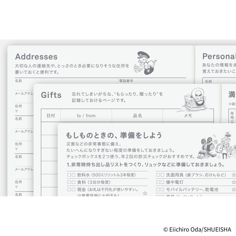 Other additional pages standard to the Hobonichi Techo, such as the Time Table, Favorites, My 100, Solar Terms, Emergency Preparedness, Gifts, Age Table, Addresses, and Personal Notes are also included, but with One Piece themes.