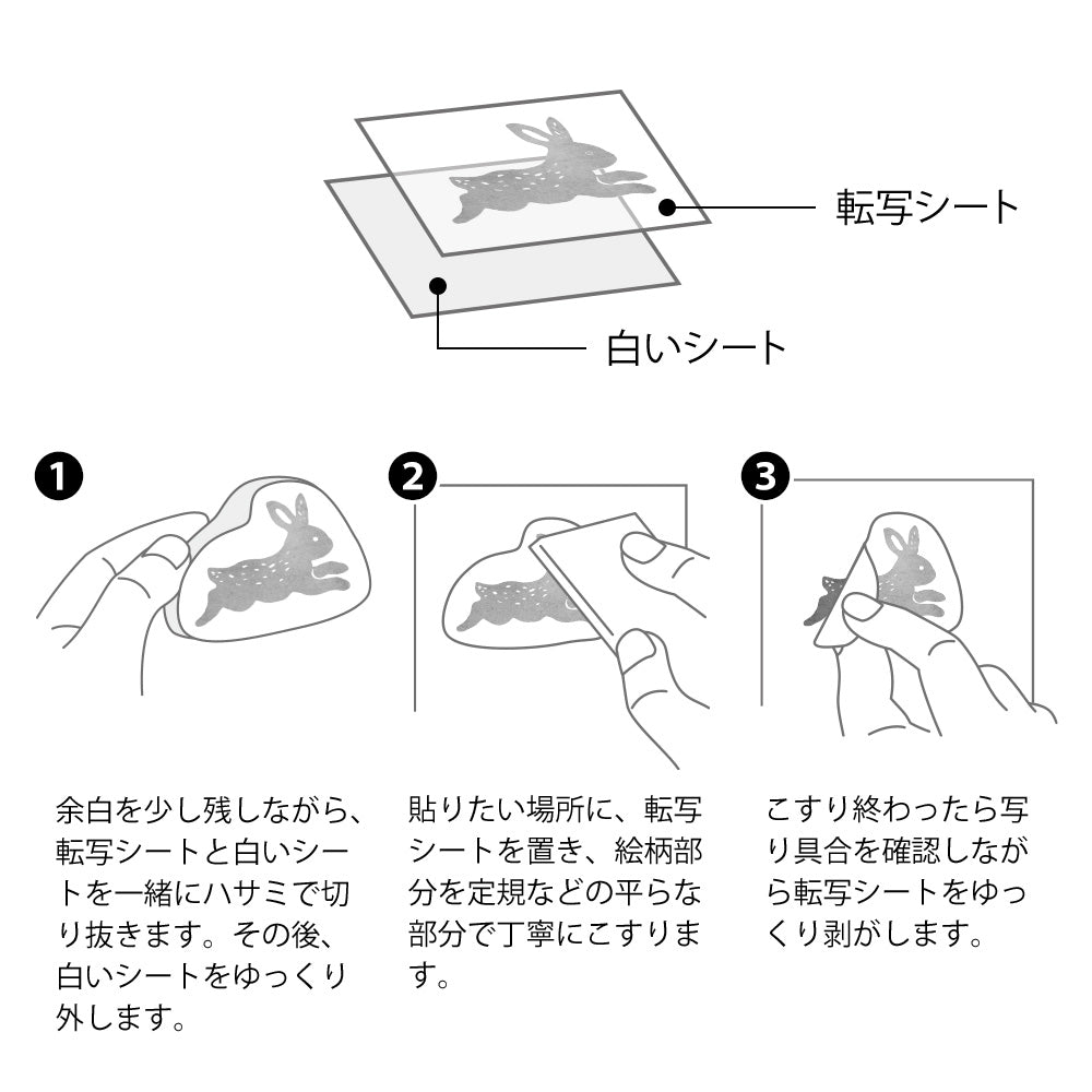 This is a transfer-type sticker that integrates with the paper as if it were a drawing when rubbed with light force.