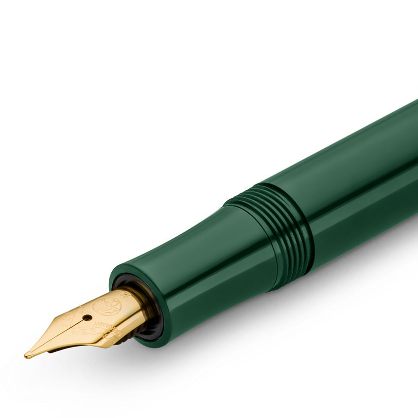 This green pocket fountain pen has a size of only 10.5 cm when closed; therefore, it can easily be carried with you. With the cap replaced, it grows to a normal size of 13 cm.
