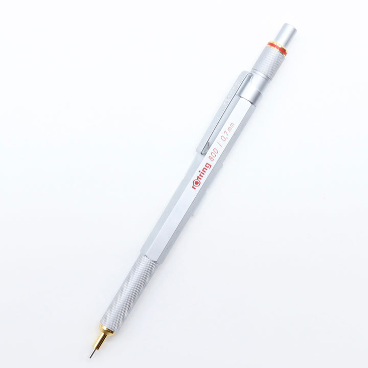 Designed for comfort and precision, the 800 Series is a top of the line mechanical pencil for advanced users searching for high quality. Its hexagonal body makes the pencil easy to hold and prevent lead breakages. Provides users with the unique "Twist and Click" retractable mechanism. Balanced and ergonomic, the rOtring 800 includes a lead hardness indicator and the exclusive Rapid B Eraser. Firm grip offers supreme comfort for writing and drawing with precision. Body Material: Plastic Size Dimensions: 5.55 x 0.31 x 0.31 inches Weight: 0.16 ounces Line size: 0.7mm