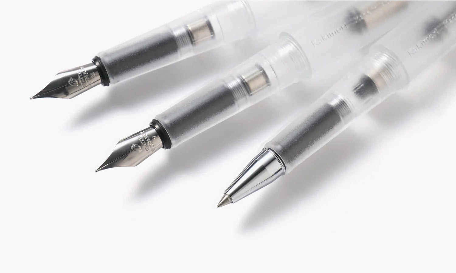The Frost pen series was created for the enjoyment of all ink writers, whether experienced or just starting out. Its semi-opaque design reveals the ink colour and nib shape, showcasing them as unique design elements.