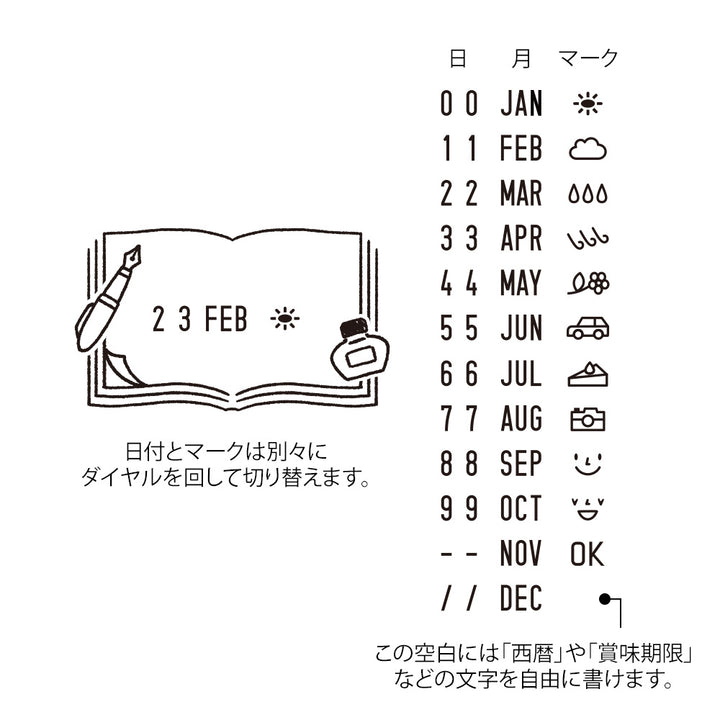 * A fun stamp that can be used to decorate notebooks, diaries, etc. by rotating it to select a pattern.