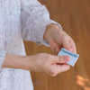 The towels are from our most popular Ferghana series, which is woven from soft twisted thread for a particularly soft texture and high absorbency. Our new products come in a slightly more compact size (20 × 20 cm) – perfect for fitting into a small bag or a pocket.