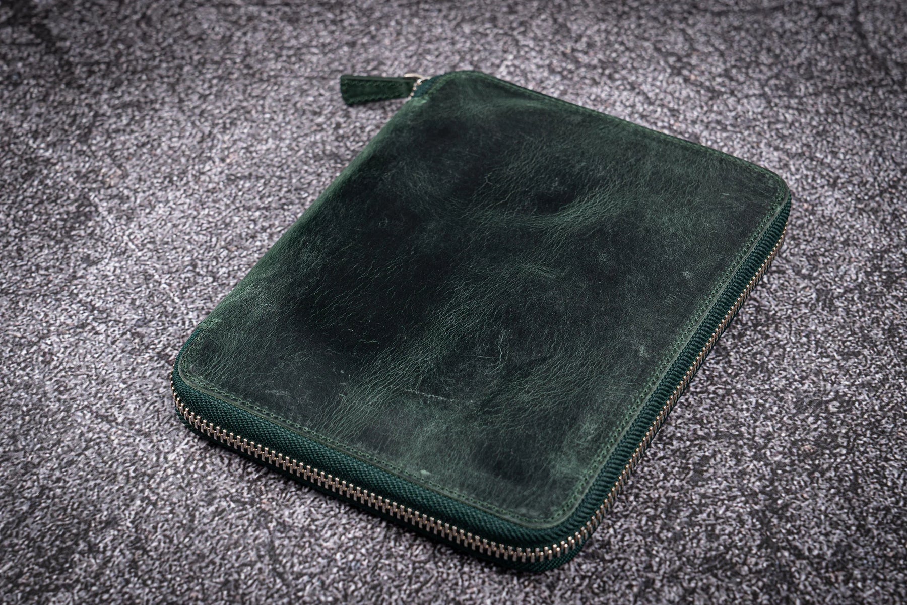 Galen Leather - Leather Zippered 10 Slots Pen Case with A5 Notebook Holder - Crazy Horse Forest Green