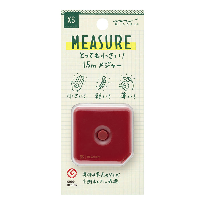 The XS series, bearing the name "Extra Small". This tape measure is the world's smallest class with high functionality. Despite its compact body measuring 38mm in length and width, it can measure 1.5m. It is comfortable to use as it is made of "glass fiber tape," which is resistant to winding and does not stretch or shrink easily.