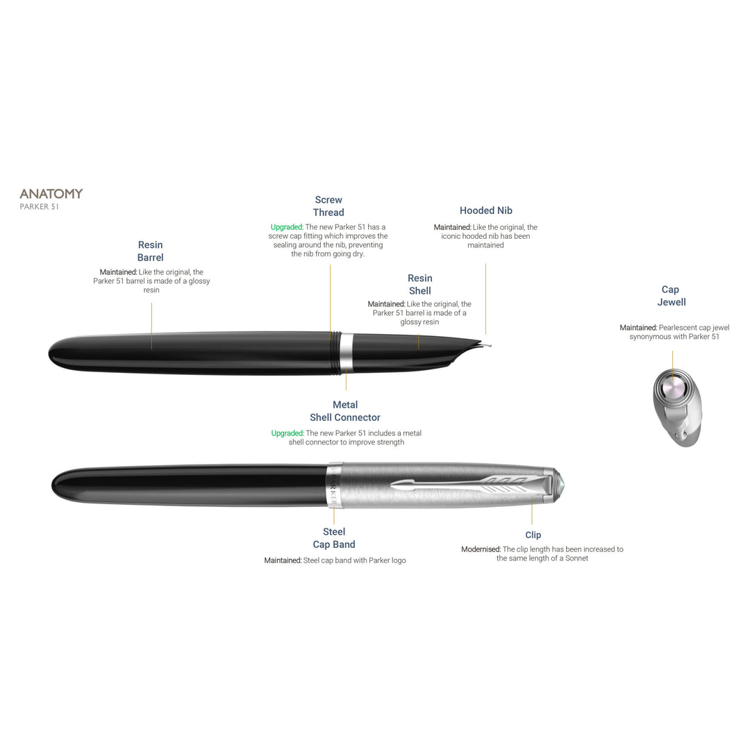 In 2021 Parker re-launches the Parker51 maintaining the hallmarks of the original that gave the51 its identity while leveraging technical advancements and our expertise and craftsmanship to ensure its fit for use in the modern world.