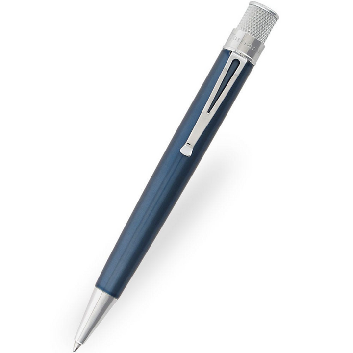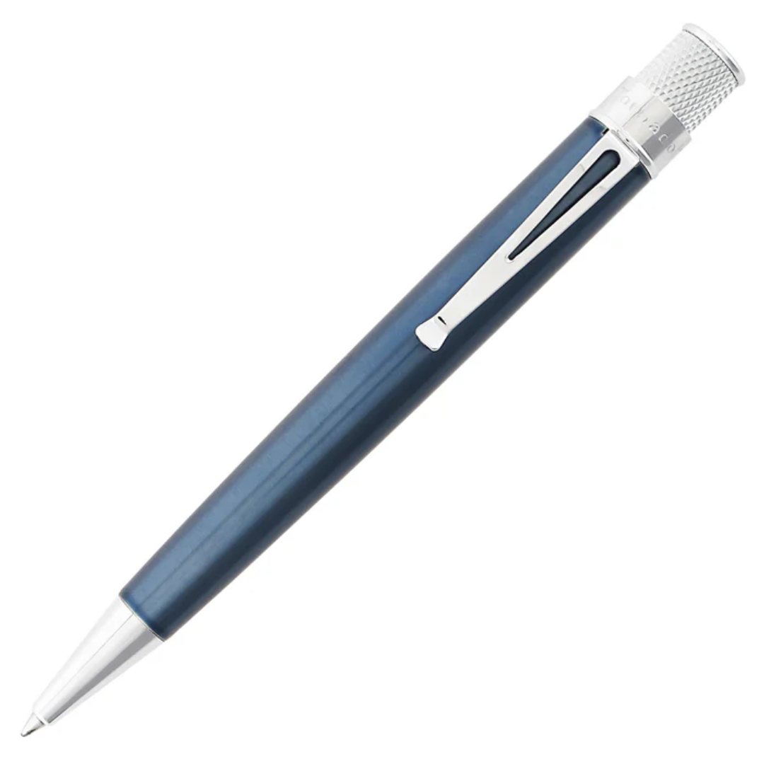 Inspired by the vintage aesthetic of mid-century Americana, the Retro 51 Tornado rollerball pen is a must-have for any stationery collection. Utilizing a capless rollerball refill the pen glides effortlessly across the page, whilst the twist action cap has knurled detailing for additional grip. The broad profile and pleasing weight make using the Tornado a real joy. Constructed from sturdy stainless steel and completed with Ice blue lacquer and chrome plated trim, the pen has a classic and professional appeal. As Retro 51 says “Life is too short to carry an ugly pen!