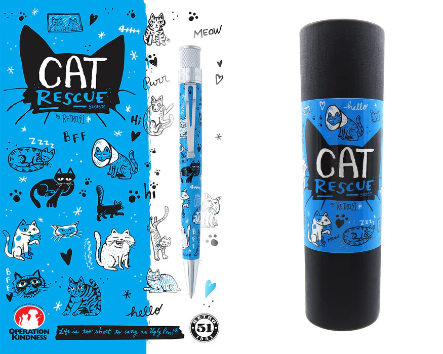 Introducing the Cat Rescue writing instruments from Retro51, featuring the most adorable cat illustrations. These charming pens showcase various breeds in endearing poses and delightful expressions, adding a touch of whimsy to your writing experience.