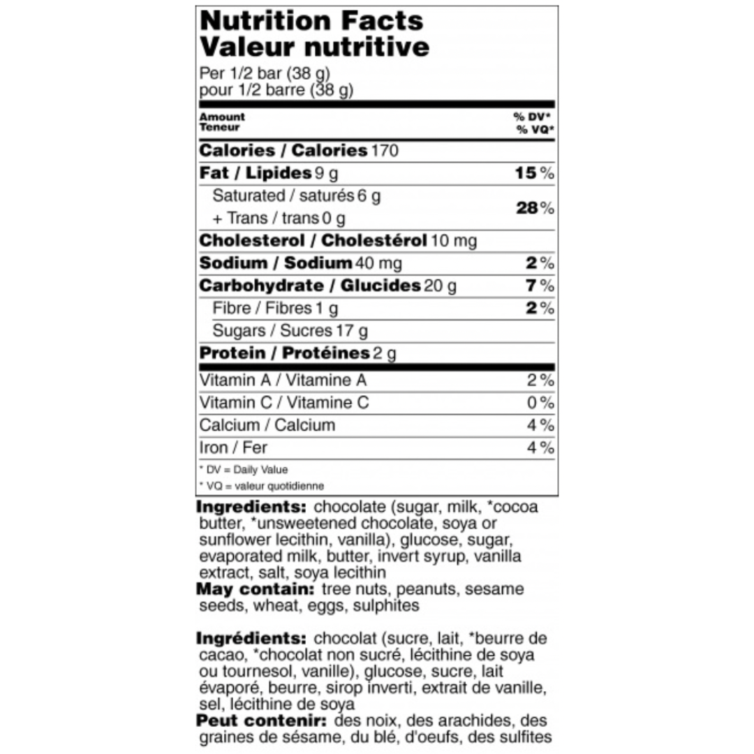 Taking the silky goodness of Rogers' Milk Chocolate Butter Caramel pieces and putting them into a bar for all the fans who demanded more. A signature to the Gourmet Chocolate Bar line.