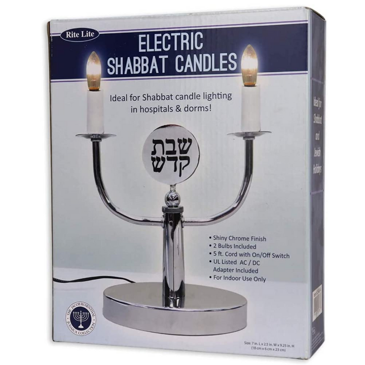 RITE LITE - Electric Shabbat Candles - Chrome Plated, Low Voltage