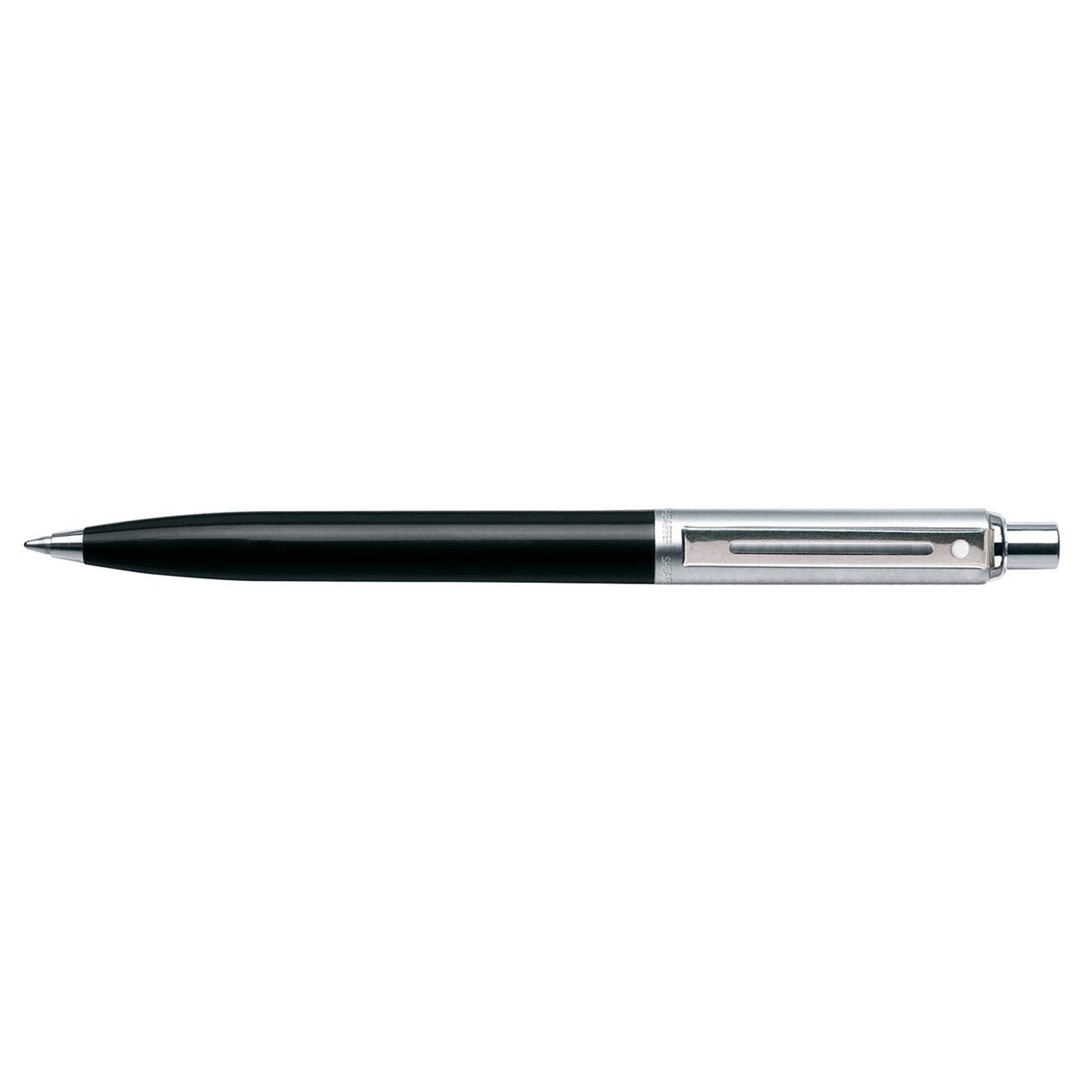 Sheaffer Sentinel Ballpoint Pen in black and a brushed chrome plate trim. Slim profile, classically-styled. Push-button retractable mechanism. Reliable and great value.