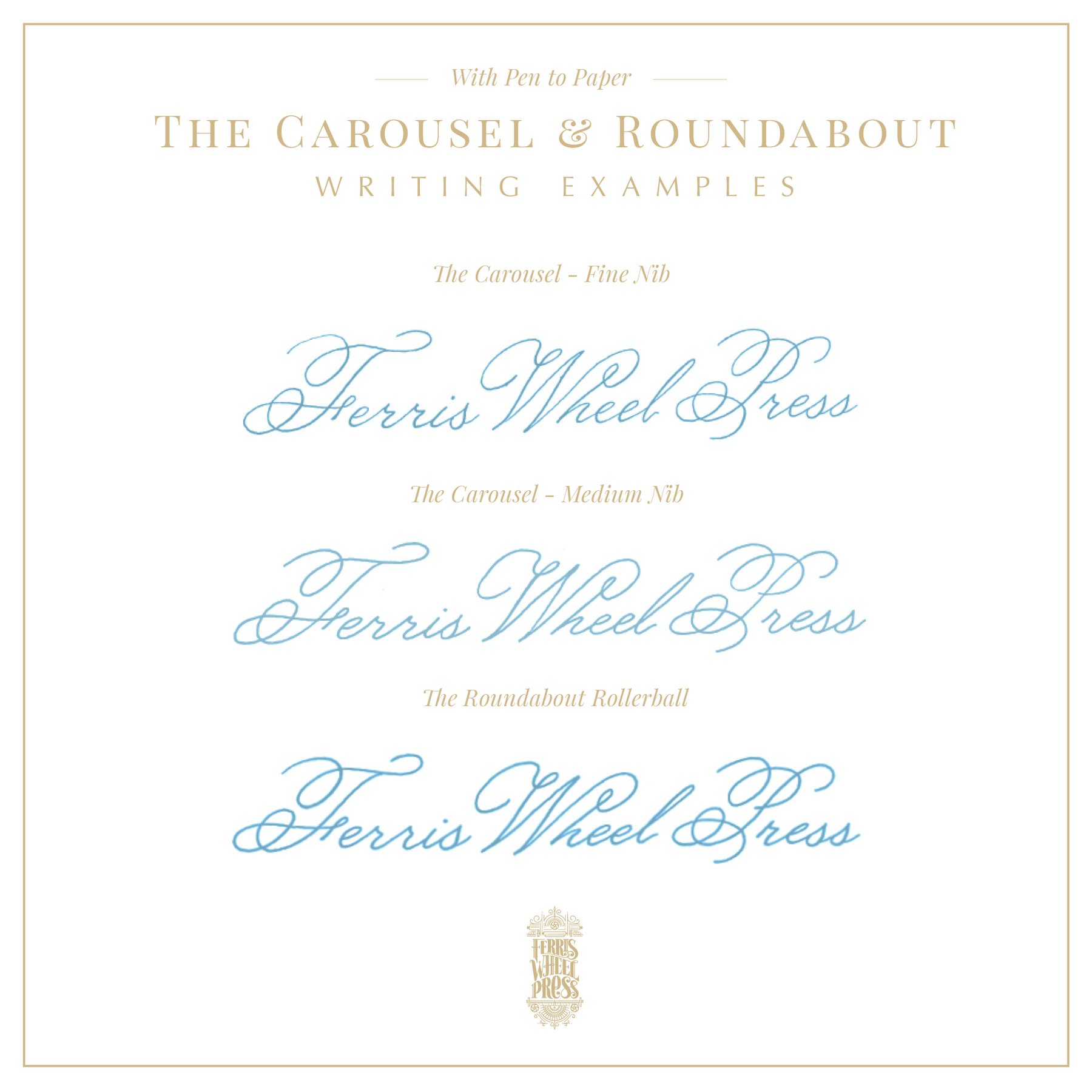 The Carousel is a joyous writing instrument that combines tactility and nostalgia in a lightweight body to create a charming experience with every single detail. The all new custom-ground steel nib is playful and agile, able to produce beautifully nuanced lines with its subtle flexibility. Available in both fine and medium weights, the new nib is stamped with a galloping horse that dances to your every word. Each Carousel fountain pen comes equipped with its own ink converter, ready to be filled and refilled all over again with your favourite Ferris Wheel Press Ink. Launching in 6 stunning colours, which pen evokes your most joyful memory of the carnival? Features: