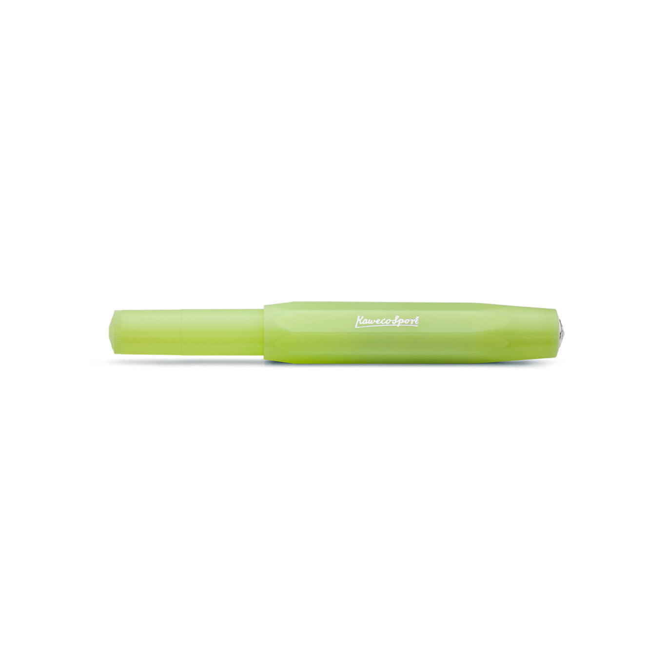 The writing instruments of the Frosted Sport series come in fresh, pastel colours and are characterized by a slightly opaque, milky plastic. The series gives the classic Kaweco Sport a completely modern touch. Matching the cool shades, the elements were kept in silver like the logo cap.