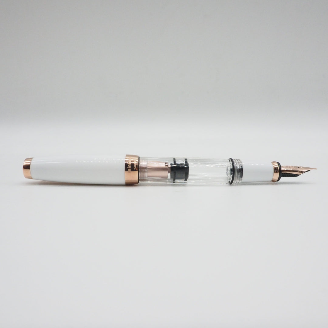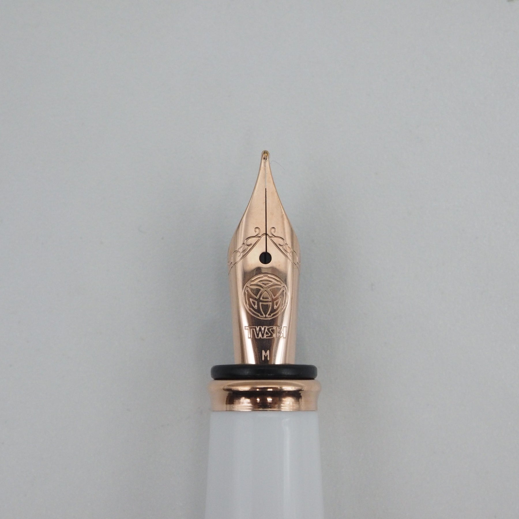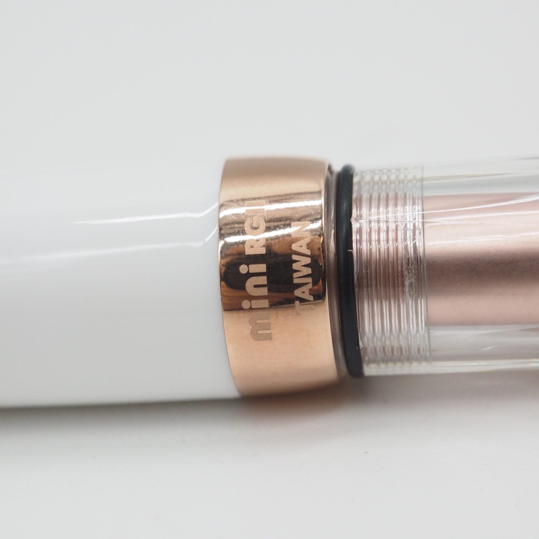 TWSBI - Diamond Mini White RoseGold V2 Fountain Pen Limited Edition. Piston filler type fountain pen. Comes in EF, F and M Roughly the same height as an iPhone when capped and stored away Slightly longer when cap is posted on the pen. (perfect length for writing when cap is posted on the back) About 1 inch shorter than a Diamond 580 fountain pen. Please note: Ink is NOT included A quick no brainer guide in choosing nib sizes in an overly complicated fountain pen world: If you write small, go with an EF For the normal writer, F is the most popular If you tend to lean on a bigger font, M will be perfect B is for statements!! Sign a check in B, write a header in B, do some coloring/shading in B Stub nibs are italic in writing style (have a special card or invitation to write?) See our product review video.