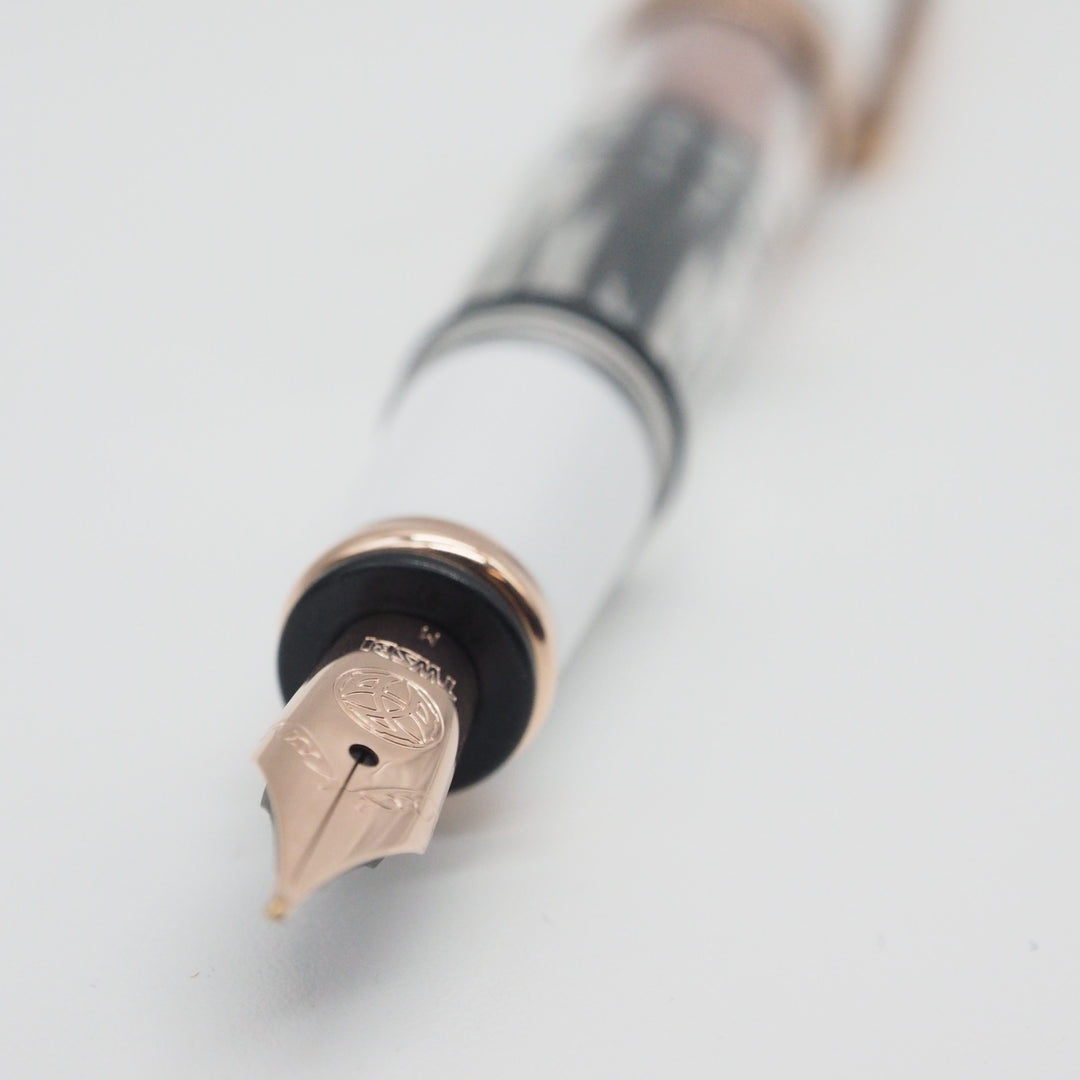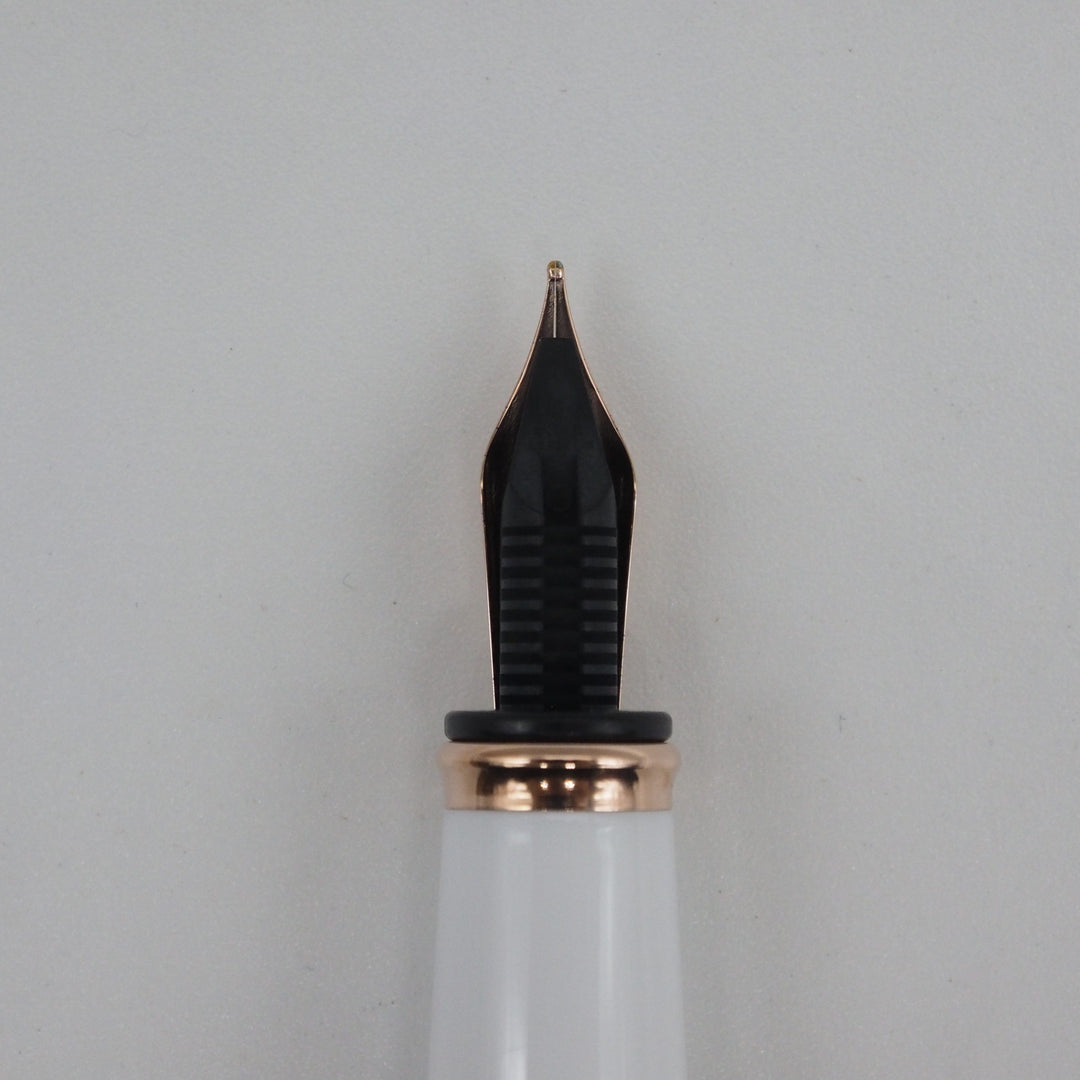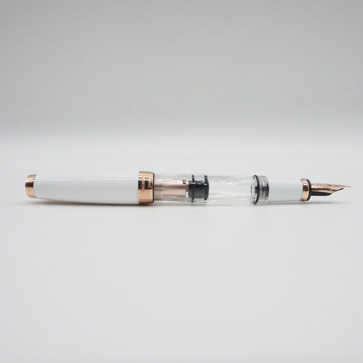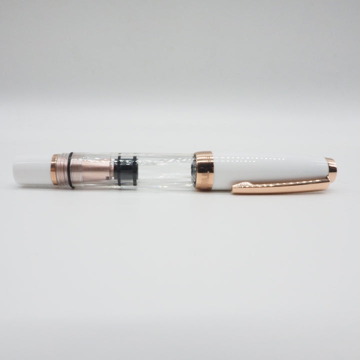 TWSBI - Diamond Mini White RoseGold V2 Fountain Pen Limited Edition. Piston filler type fountain pen. Comes in EF, F and M Roughly the same height as an iPhone when capped and stored away Slightly longer when cap is posted on the pen. (perfect length for writing when cap is posted on the back) About 1 inch shorter than a Diamond 580 fountain pen. Please note: Ink is NOT included A quick no brainer guide in choosing nib sizes in an overly complicated fountain pen world: If you write small, go with an EF For the normal writer, F is the most popular If you tend to lean on a bigger font, M will be perfect B is for statements!! Sign a check in B, write a header in B, do some coloring/shading in B Stub nibs are italic in writing style (have a special card or invitation to write?) See our product review video.