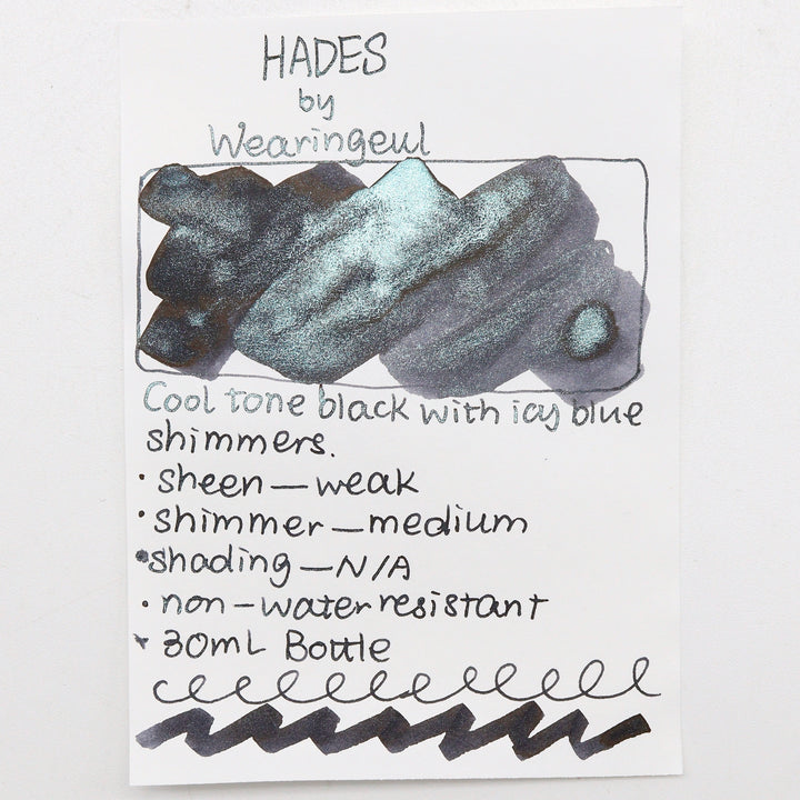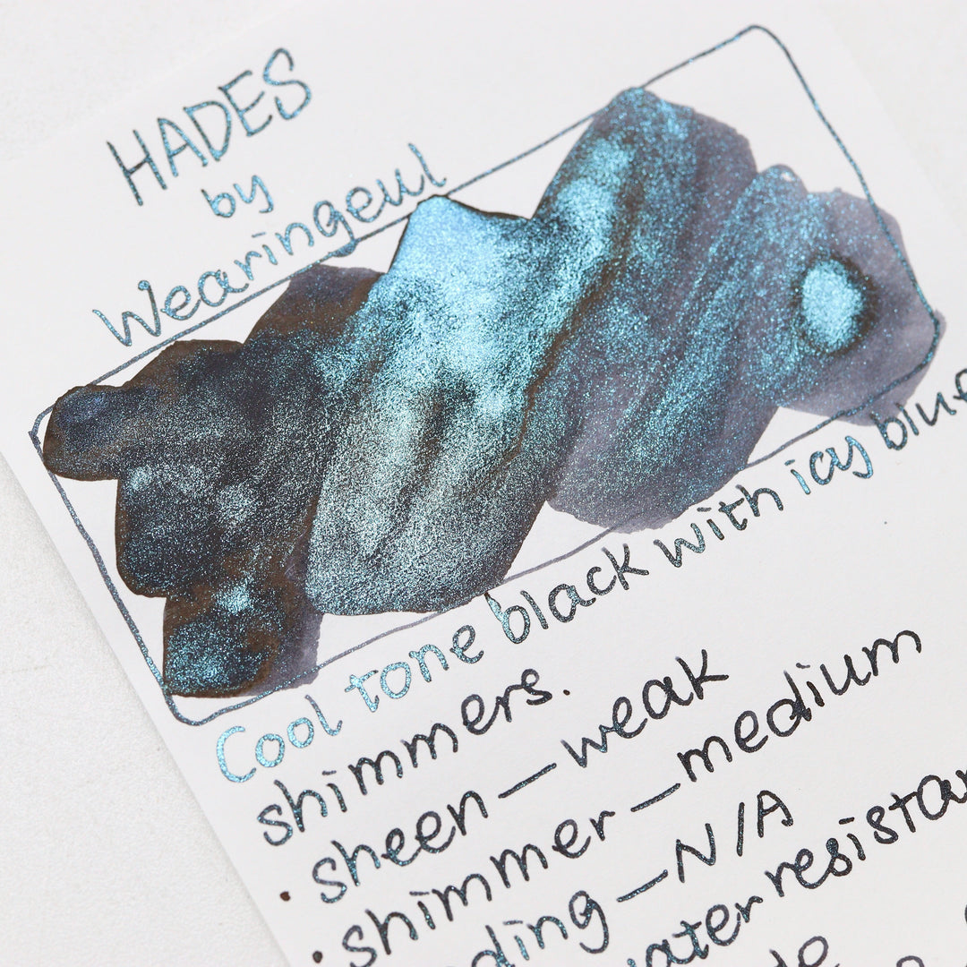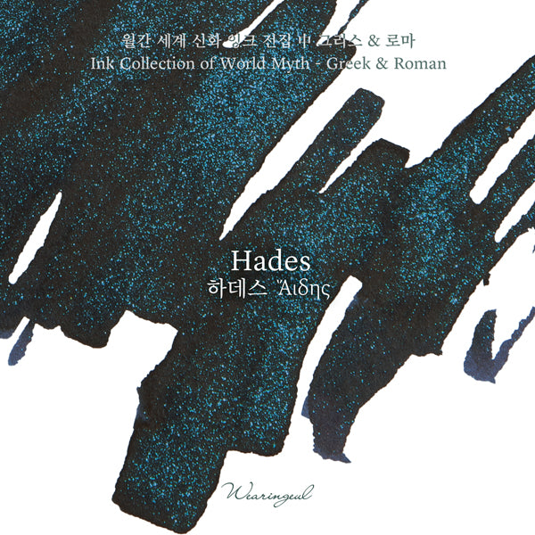 An ink inspired by the god Hades, who governs death, it embodies restrained beauty with a deep black reminiscent of the underworld. Enhanced by a frozen-blue glitter, it exudes an ethereal elegance, capturing the essence of the afterlife.