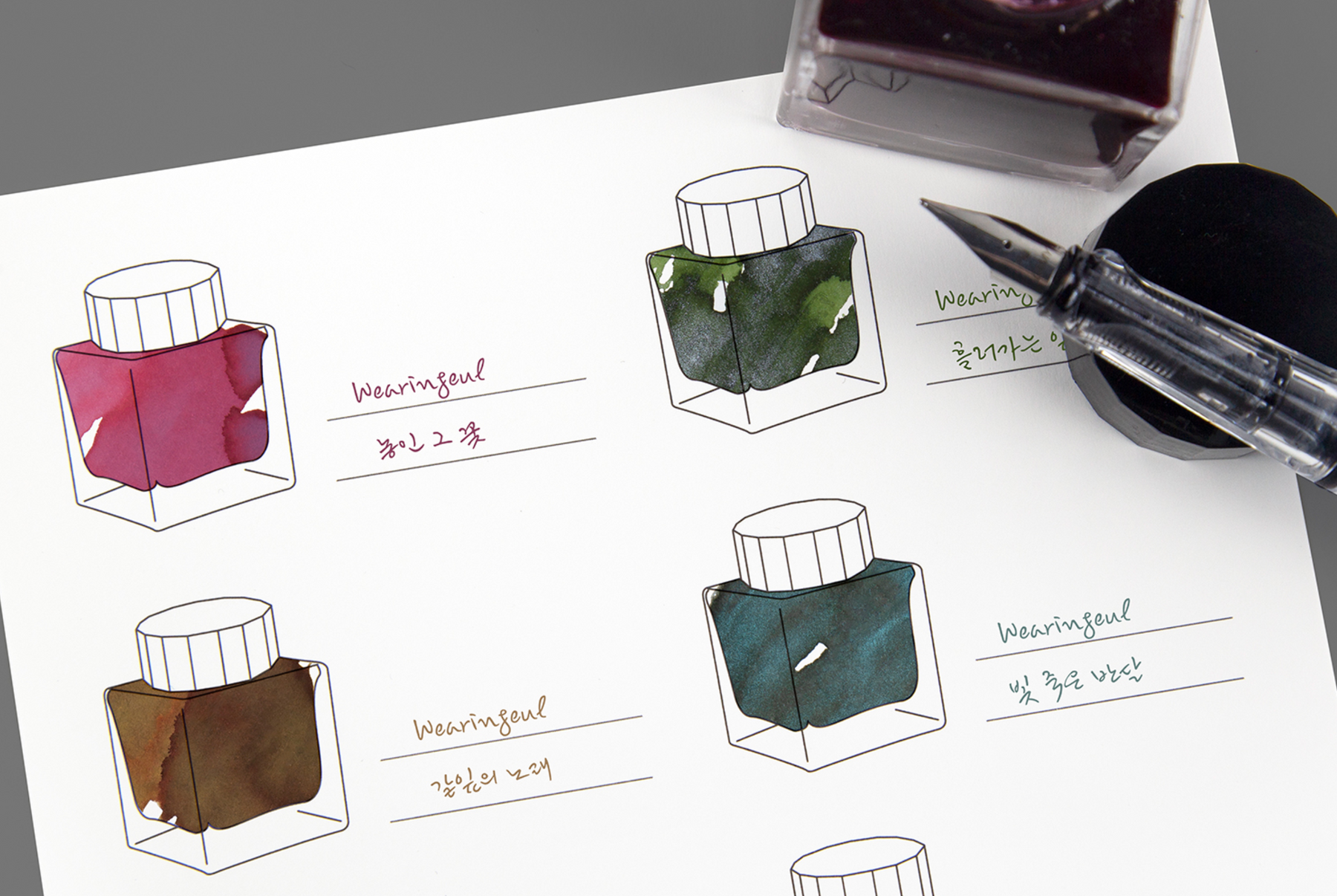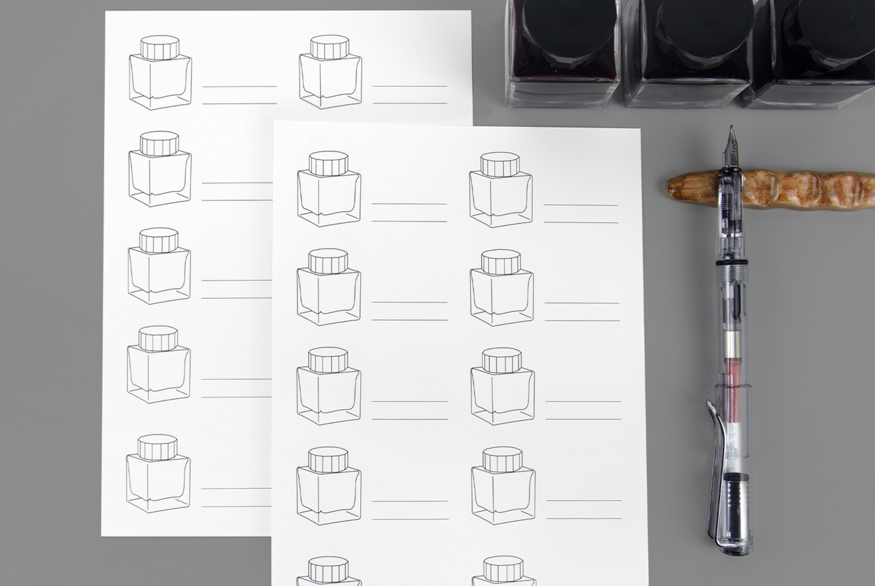 This A5 size swatch paper includes 10 ink bottles for you to organize your ink swatches in a glance. This Impression paper ink swatch also shows details of inks such as sheen, shading, shimmer.