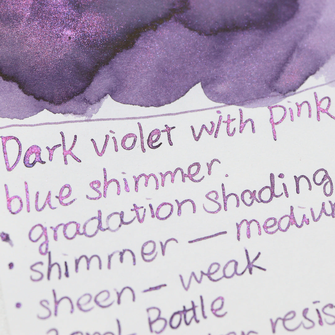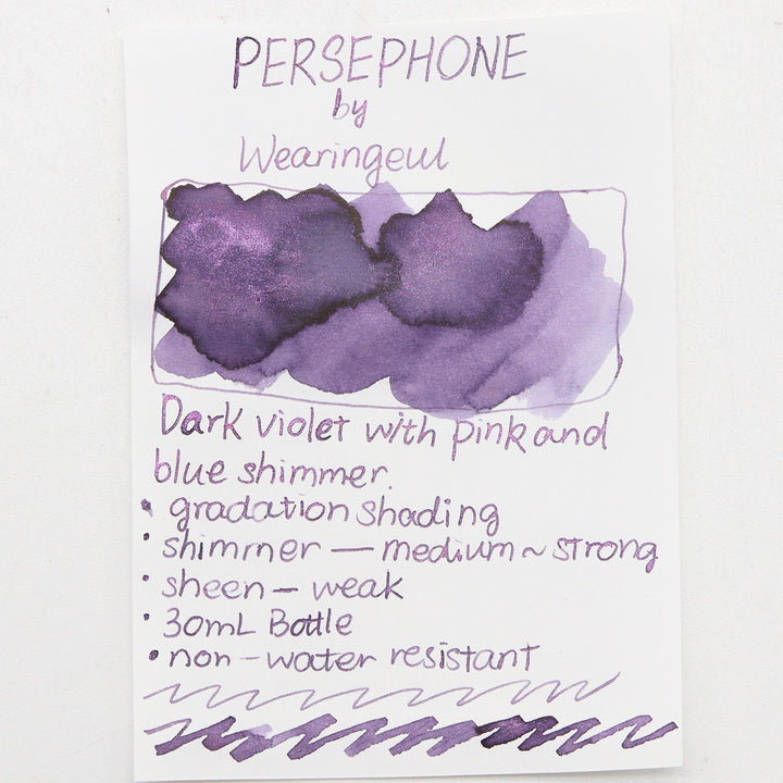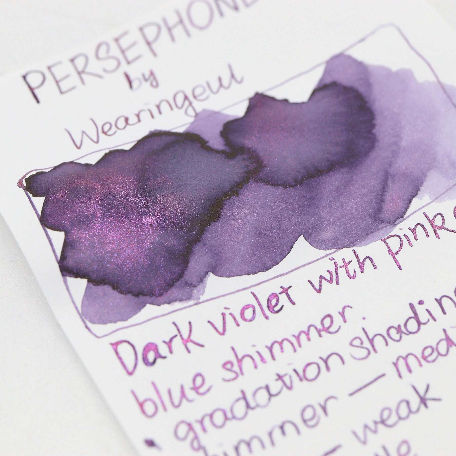 In Greek and Roman mythology, Persephone is the goddess who, after being abducted by Hades, becomes the queen of the Underworld. The Persephone ink is a dark violet colour infused with a heavy and death-laden atmosphere, embellished with red glitter symbolizing pomegranate seeds.