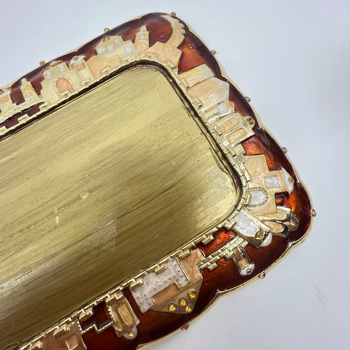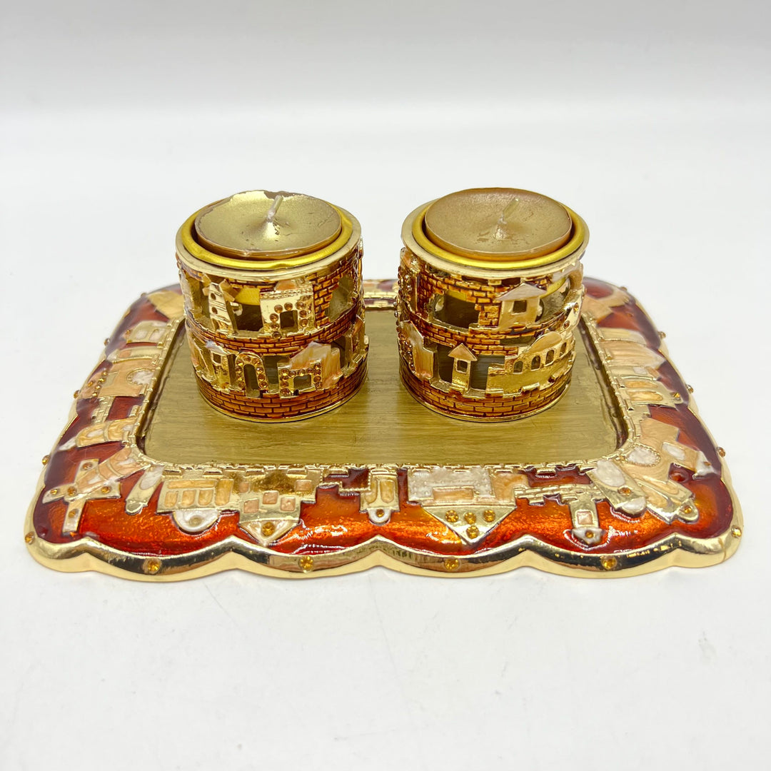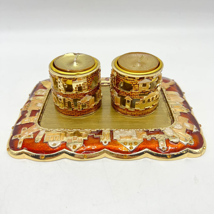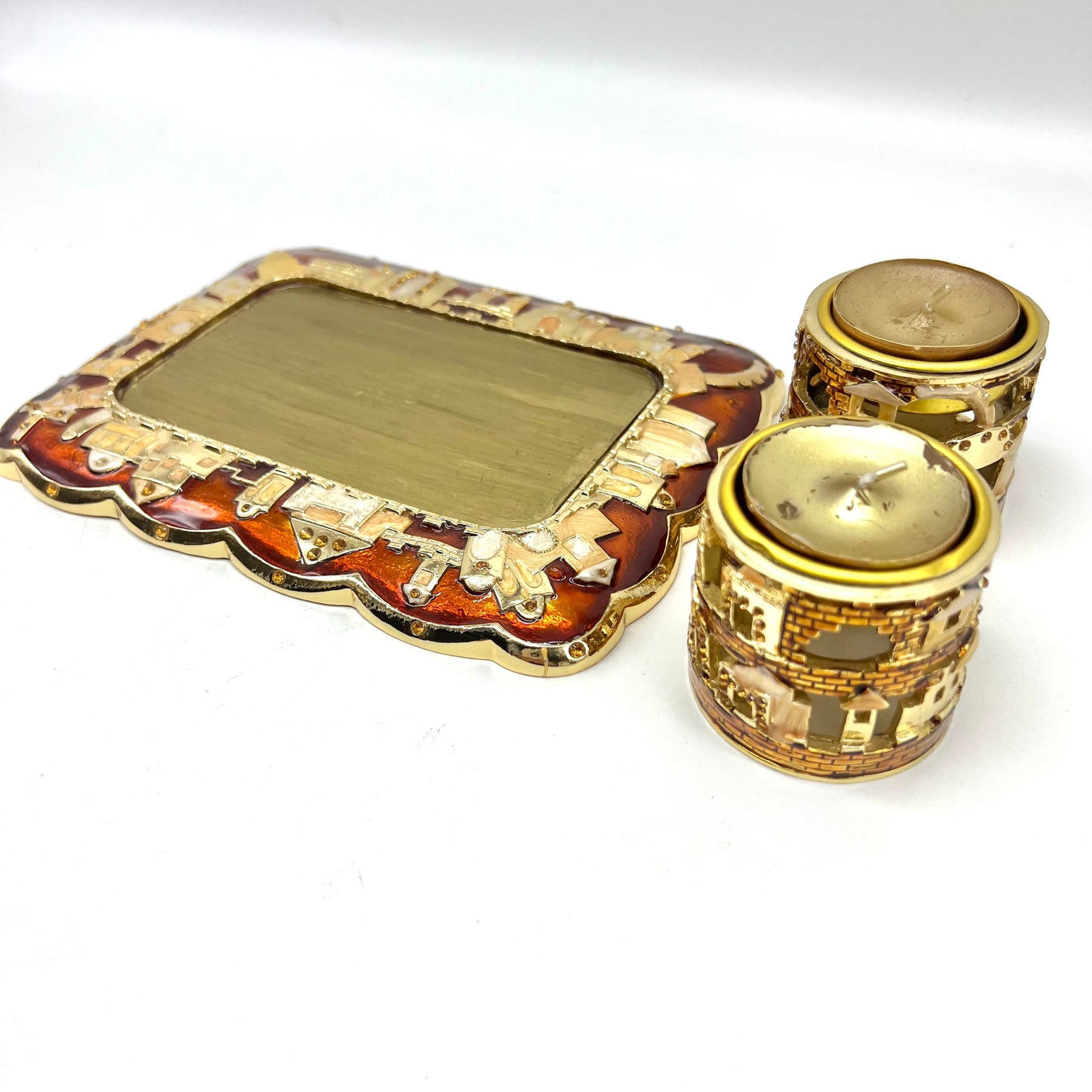 APEX JUDAICA - Jerusalem Cityscape Tealight Shabbat Candle Holder Set with Tray