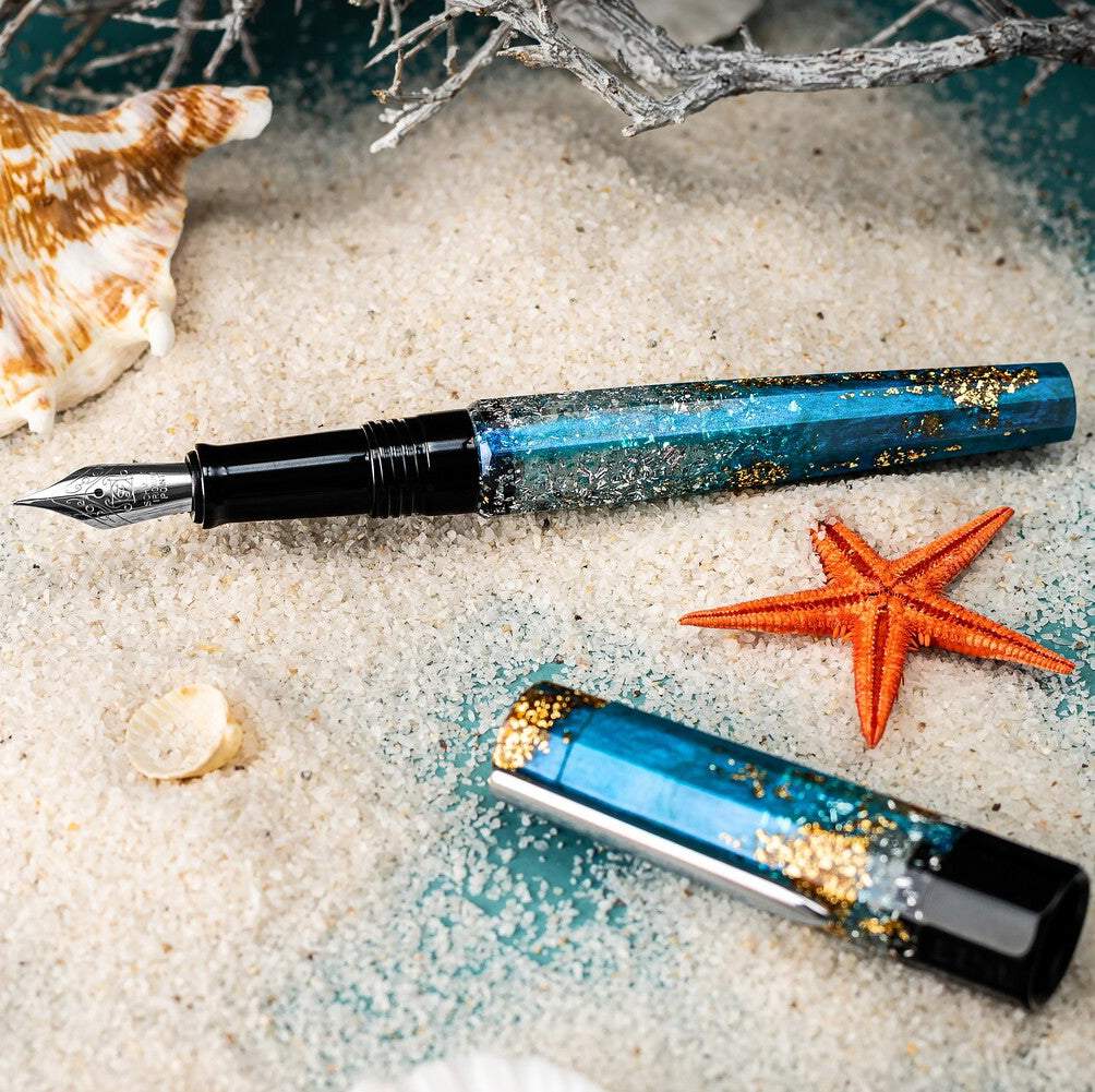 Bora Bora Fountain PenBENU celebrates life with a collection of pens devoted to different sources of simple, hedonistic pleasures, such as favorite music, a beautiful scene, an exquisite cocktail, or a delicacy. Each pen is inspired by different things that bring us joy and add a great deal of color to our everyday lives.