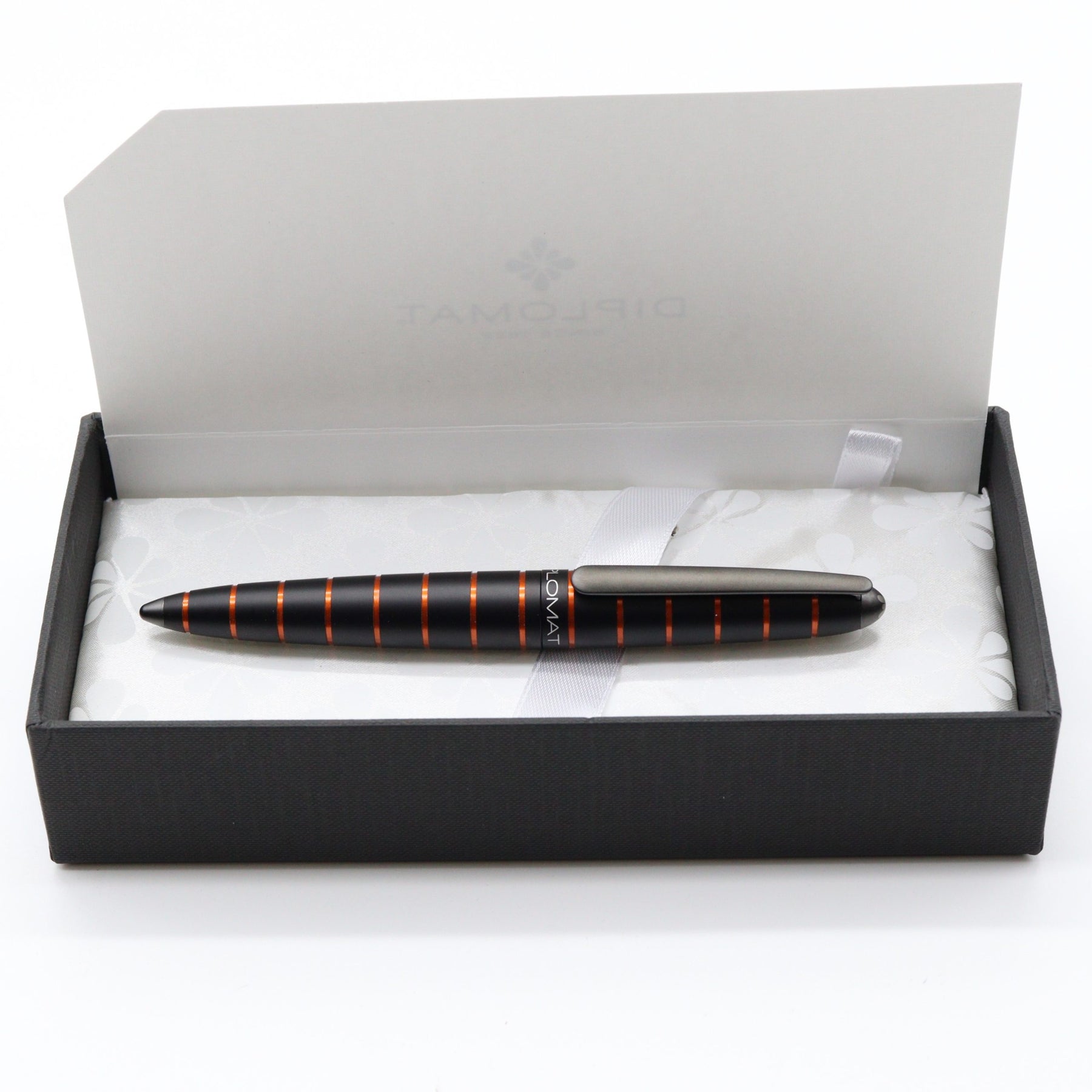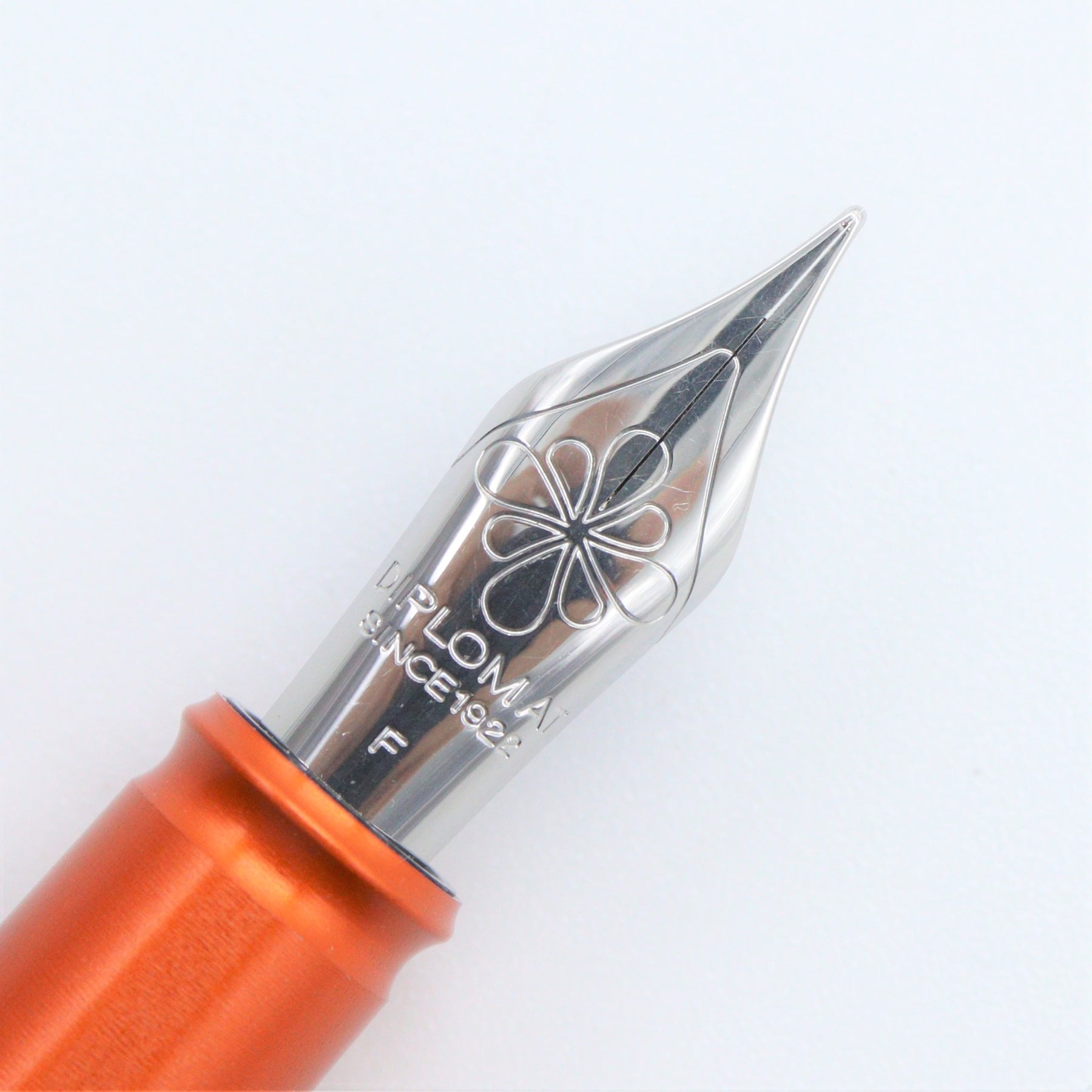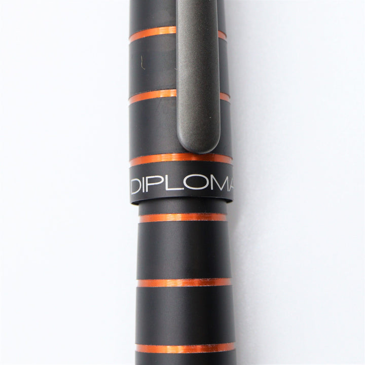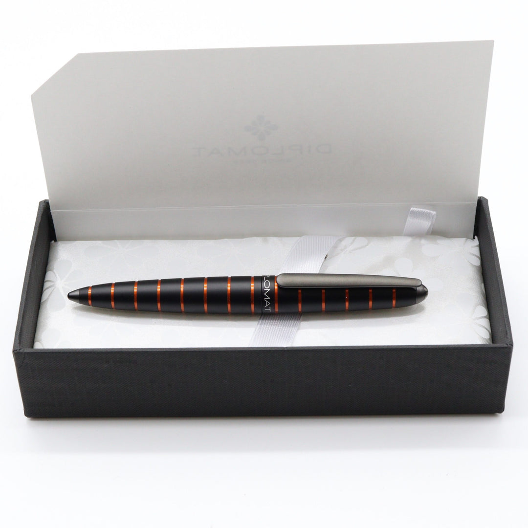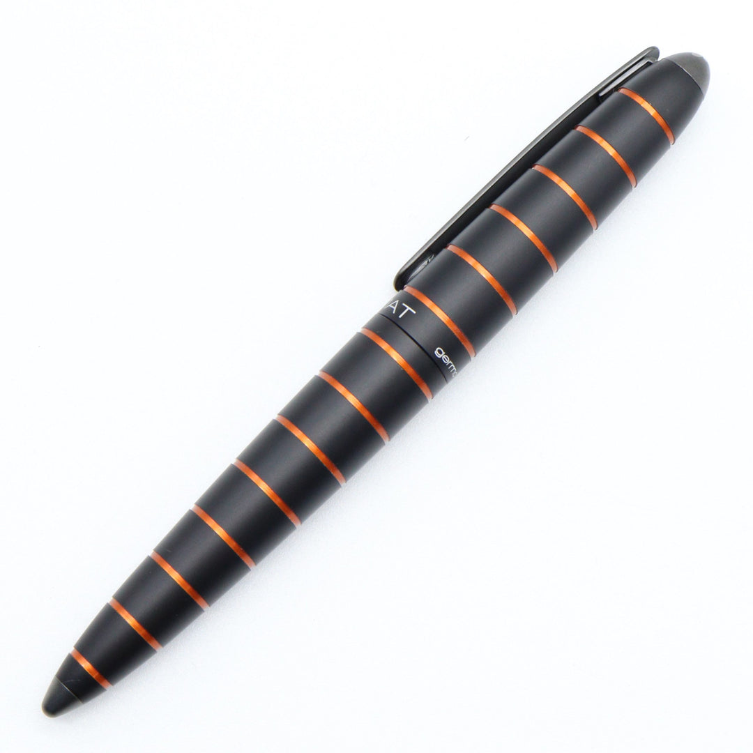 The Diplomat Elox Ring design is based on the popular Aero model. This fountain pen has a smooth aluminum body which goes well with the meaning of the model's name because Elox comes from “Eloxieren” which means anodization in German. The design was also inspired by the Zeppelin aircraft and parts of the pen feature orange aluminum crafted by horizontal rings.