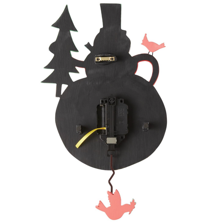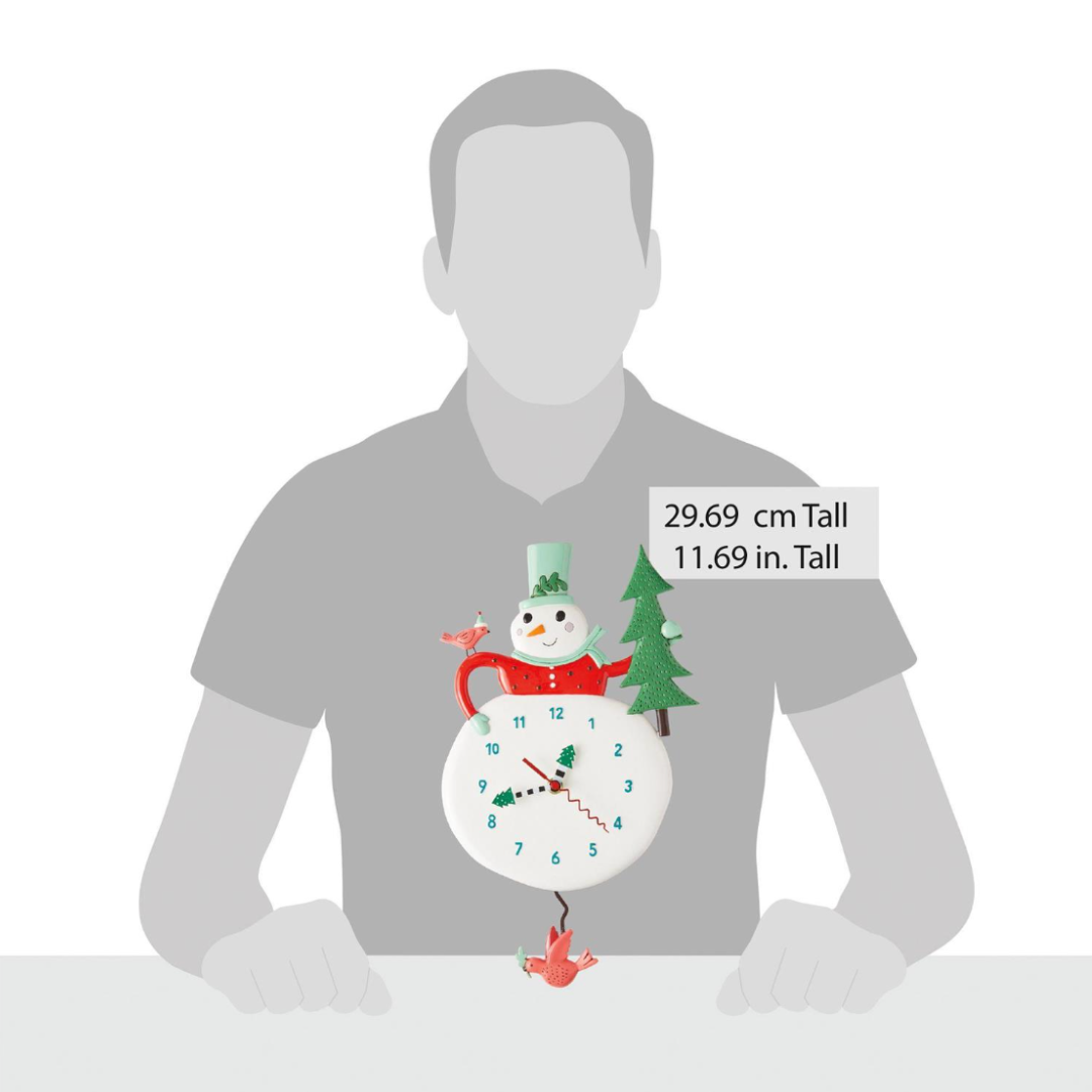 This Snowy Joy Clock from ALLEN DESIGNS is a cheerful addition to any part of your home! This snowman wears a bright smile and a mistletoe brimmed top hat! Our happy snowman is holding a pine tree and counting down the time till Christmas!