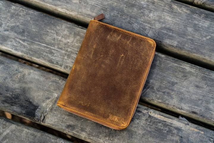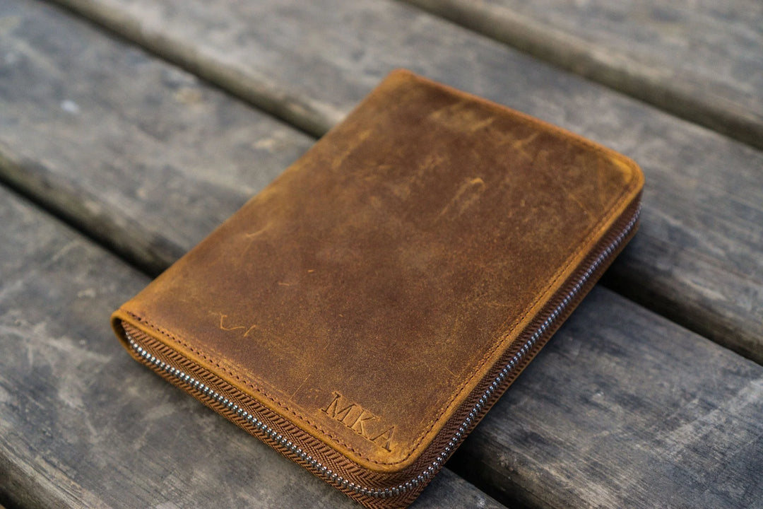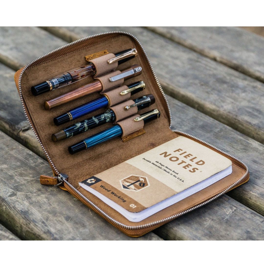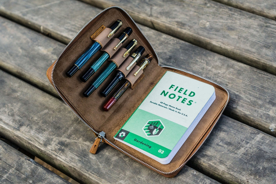 Galen Leather - Leather Zippered 5 Slots Pen Case - Crazy Horse Brown