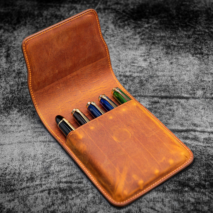 When you want to carry your favorite pens, you want them protected in your bag, purse or pocket to avoid ink leaking everywhere or getting them scratched. This leather pen holder is great to protect your fountain pens and keep them safe.