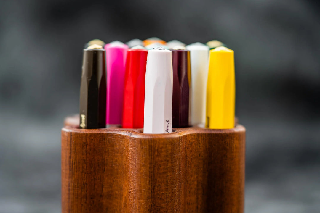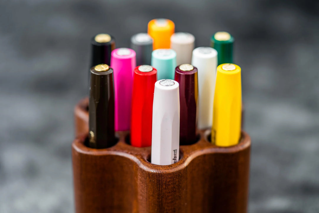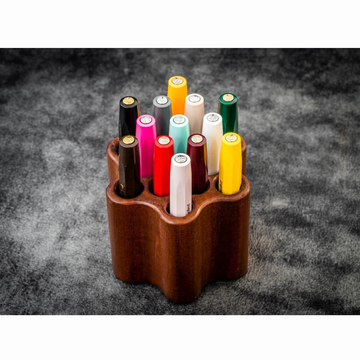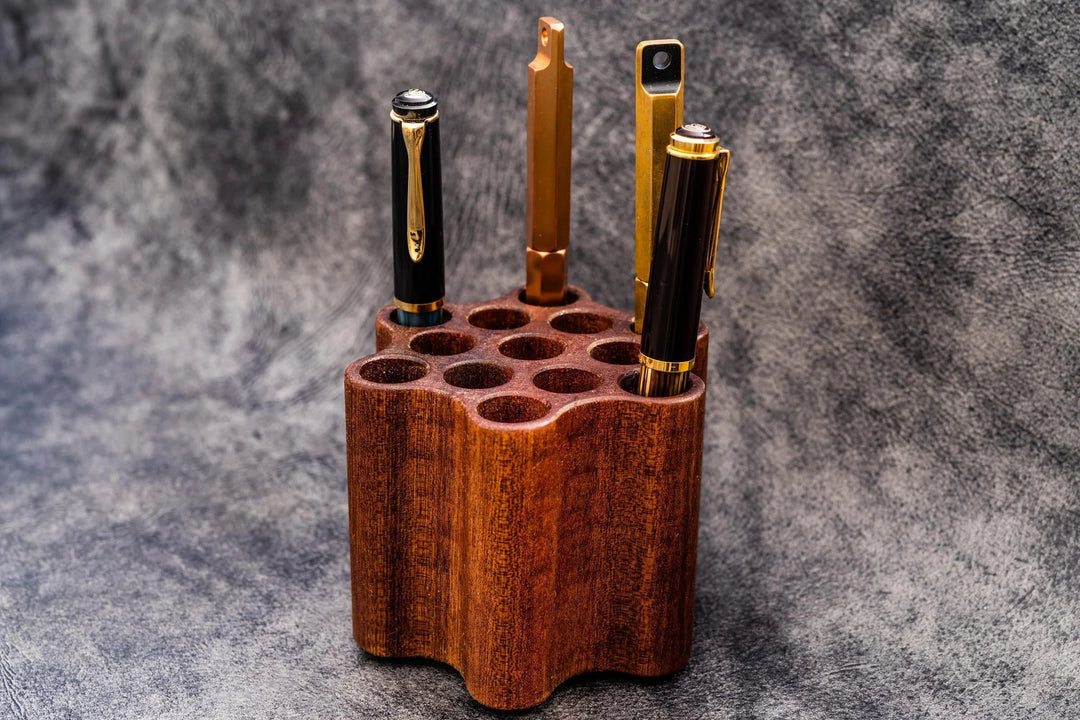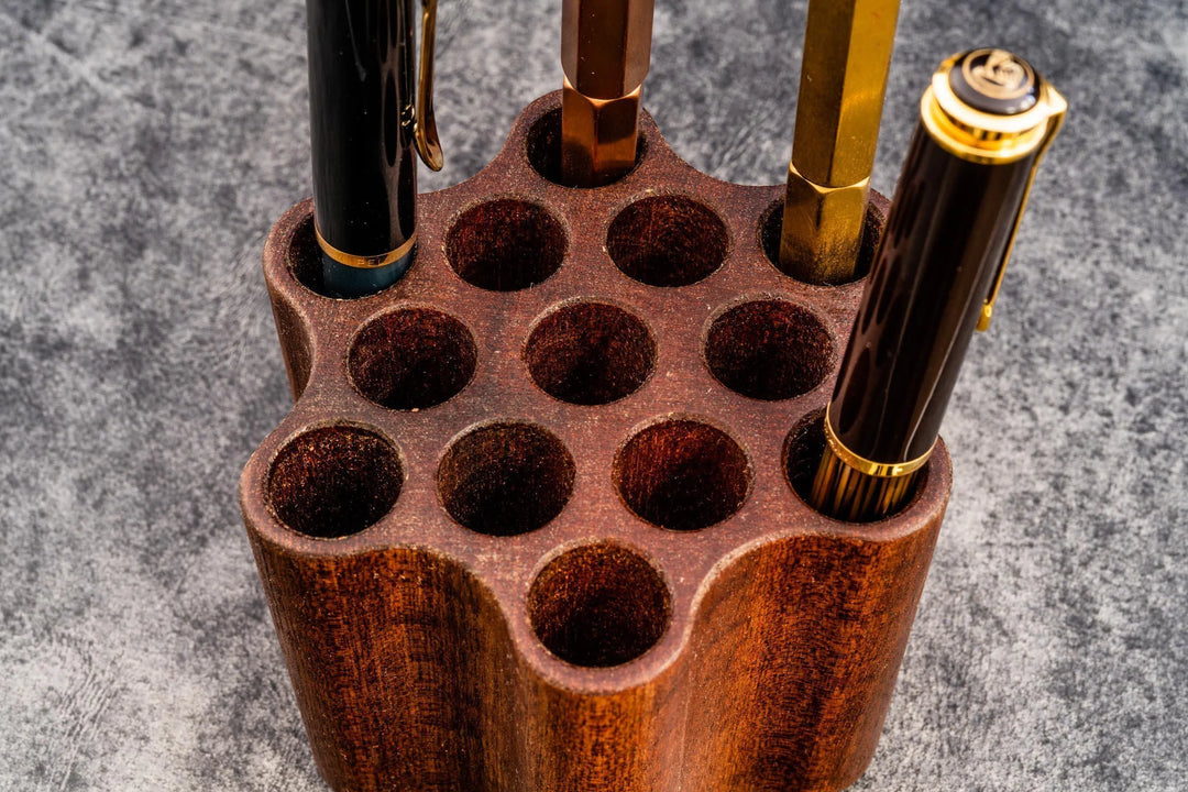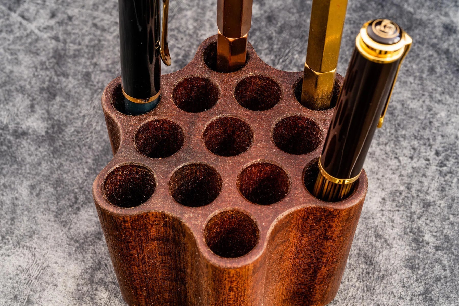 The ToolComb Wooden Pen and Brush Stand is handcrafted from solid wood. Inspired by a mid-century Danish design, it makes the perfect vintage accessory for your desk. It's also the perfect paintbrush holder for an artist. Holds up to 13 pens and fits most sizes of fountain pens.
