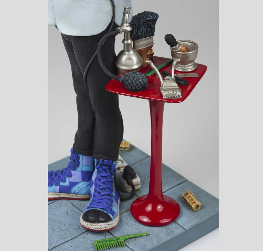 Collectable handmade figurine by the artist Guillermo Forchino. His professional series features a variety of different occupations with a comical touch.Details: - Title: The Hairdresser