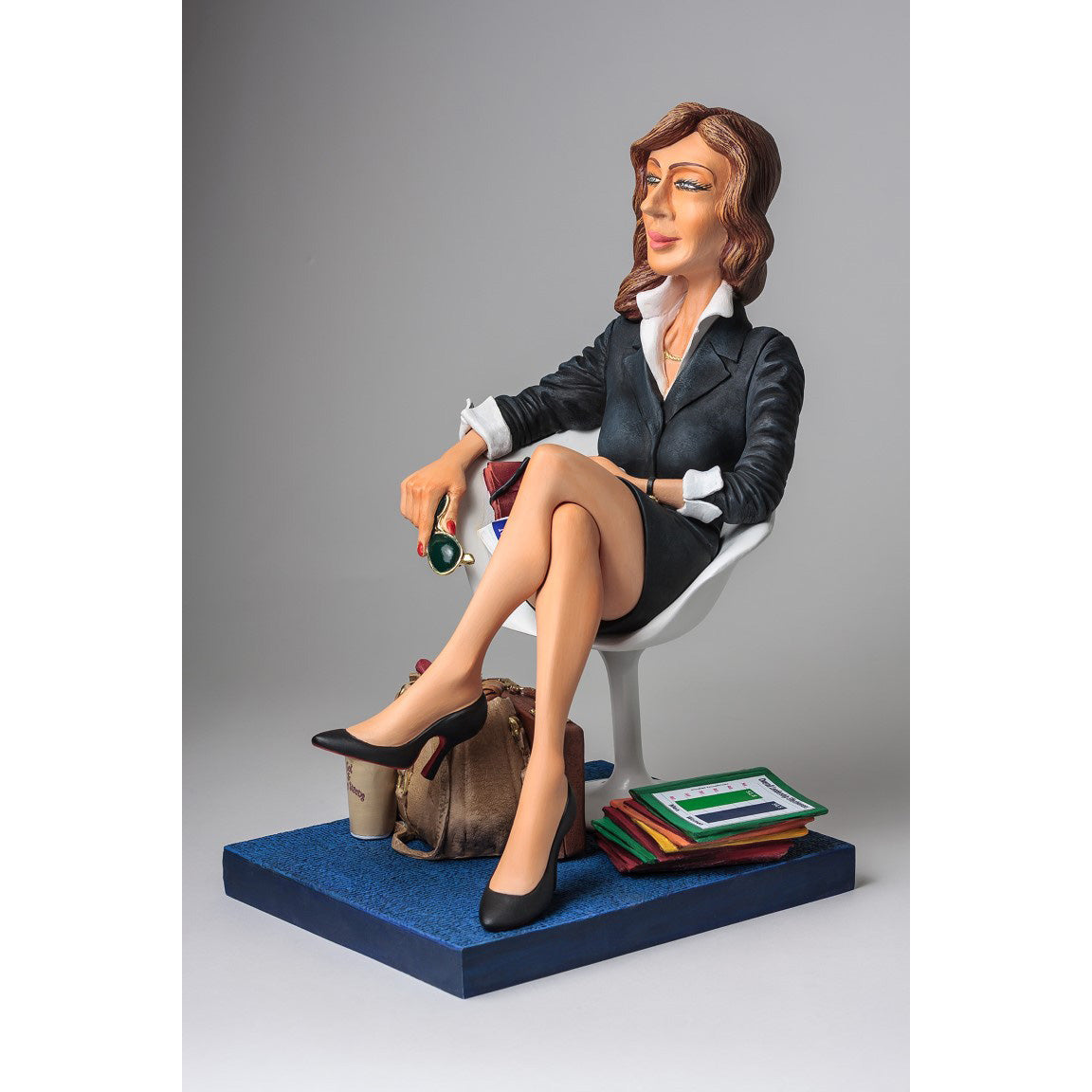 The Businesswoman Sculpture by Guillermo Forchino. This sculpture is a finely crafted, highly detailed work of art from the Guillermo Forchino collection. You will be very pleased with the quality of this amazing business woman statue. The sculpture is cast in Polystone which is composed of polyurethane, resin, and mixed with powdered stone additives that give it added weight and a porcelain or "stone-like" feel. Polystone is very durable and delivers a cleaner, more substantial representation of an original sculpture than other common materials. Unicorn Studio uses Polystone because it has an incredible ability to capture the most minute detail, making it unsurpassed in collectible manufacturing materials. Size: 12.75"H