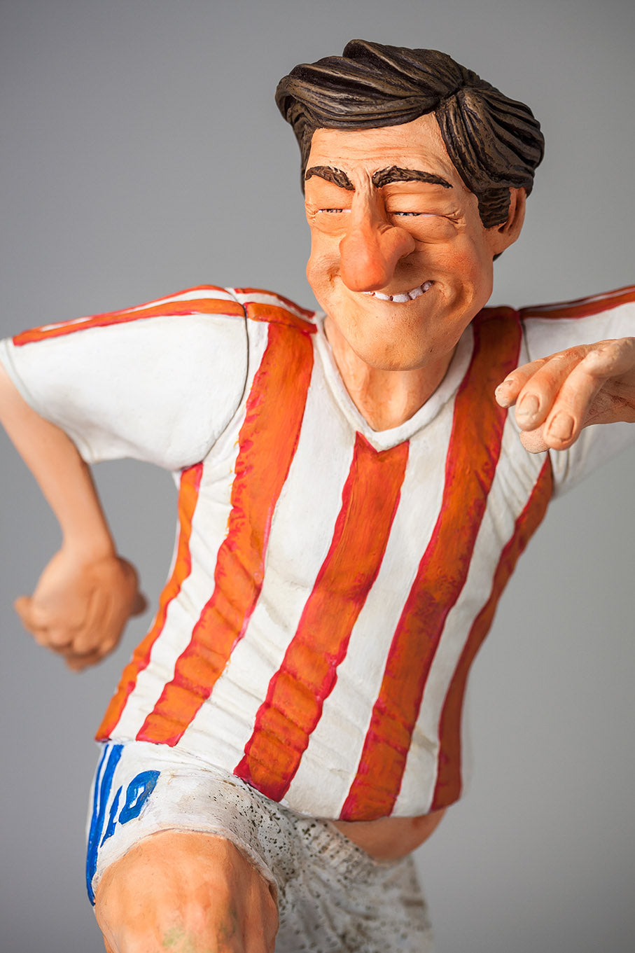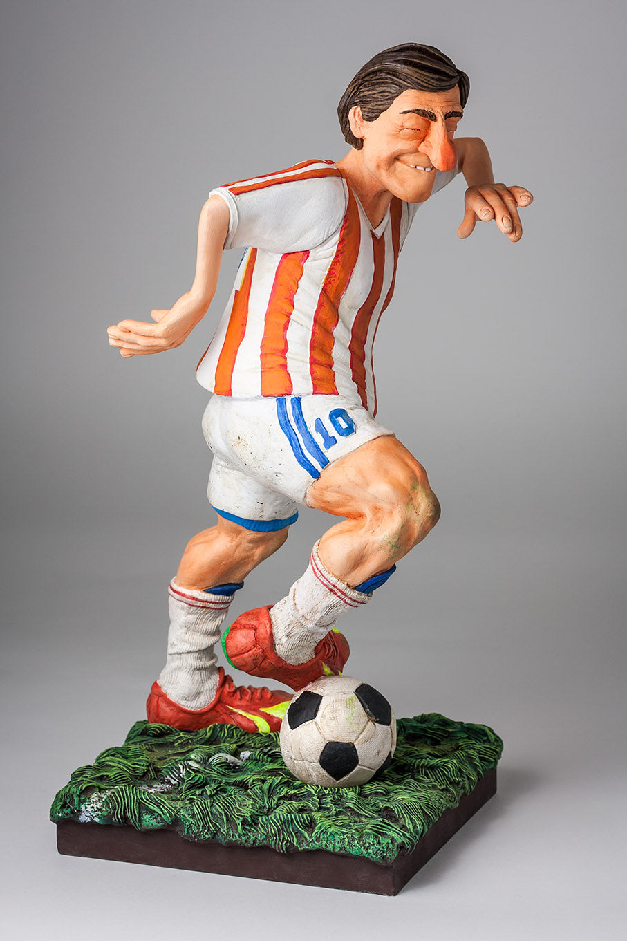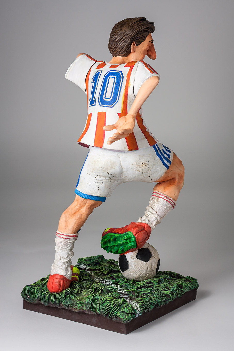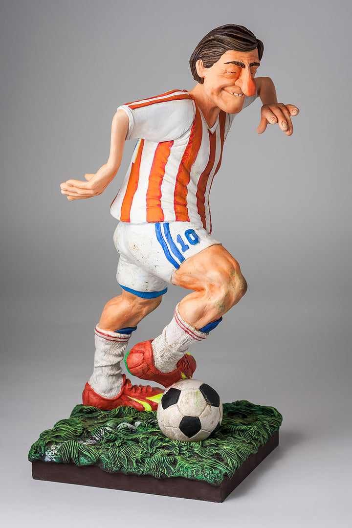 Collectable handmade figurine by the artist Guillermo Forchino. His professional series features a variety of different occupations with a comical touch. 100% limited edition Size: 21 x 19 x 39cm (LWH) Backstory: When he was eight, everybody felt sorry for Rubén Ponce. His little legs were as skinny as two sticks, sprawling out when he ran. But when he had the ball at his feet, there was nobody who could take it off him unless he was actually tripped up and would fall down like a stone. His father soon realized his son´s great potential as well as the lack of muscle strength needed in order to succeed in football. Over ten years, his father put him on a strict diet of pasta Bolognese, Spanish omelets, scrambled eggs with chorizo and rich stews with chickpeas and lots of bacon. At age eighteen, the young Rubén was healthy as a horse, his legs inspired fear and, although his hip feints had been a little dimmed by his growing potbelly, his natural ability was still intact and no one was able to make him fall so easily anymore.