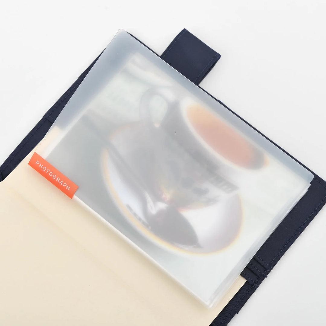 This photo album fits up to twenty 9 x 13 cm (3" x 5") photographs in its ten pages. It also works well for storing receipts, magazine, and so forth. The album has a flap to keep it secured in your cover together with your planner.