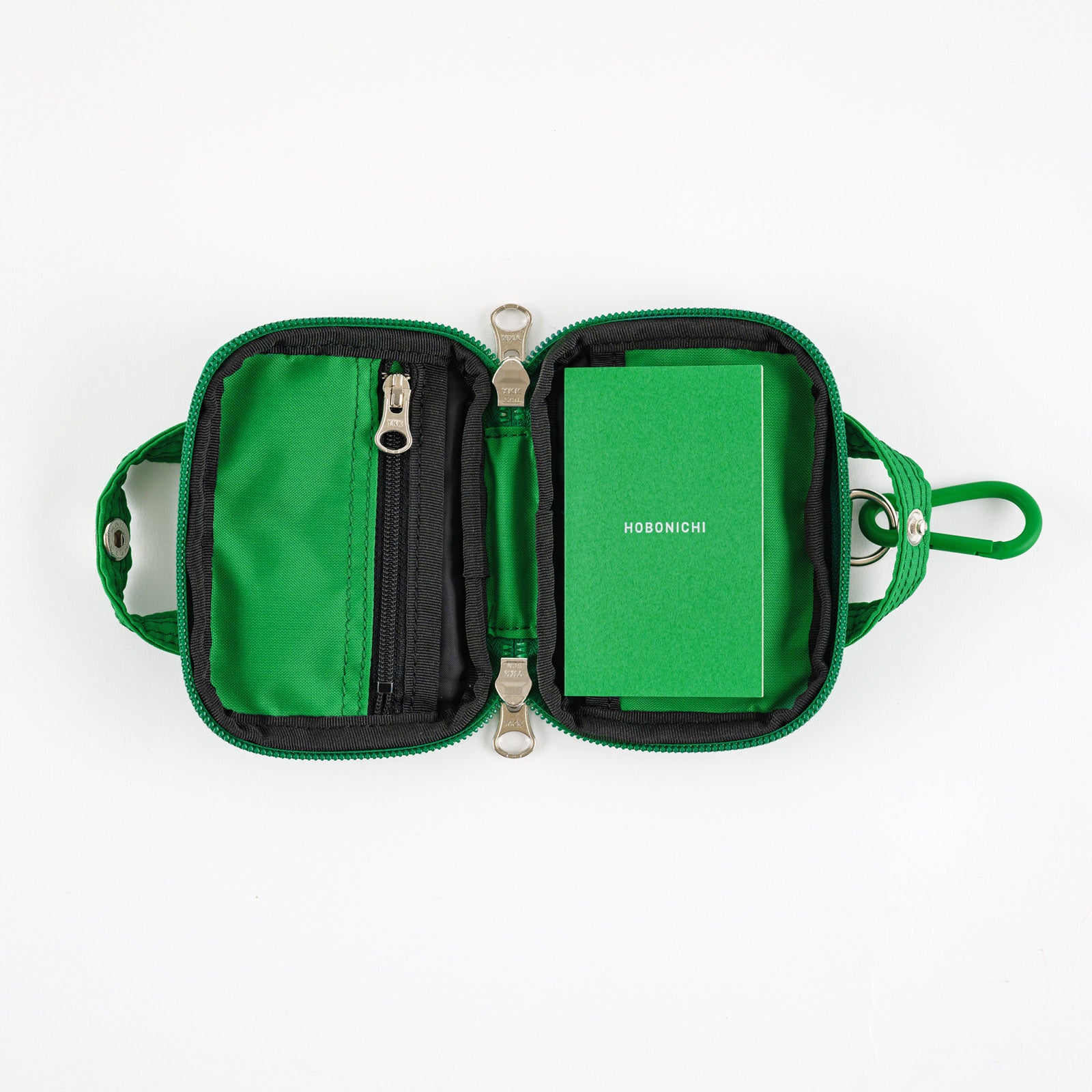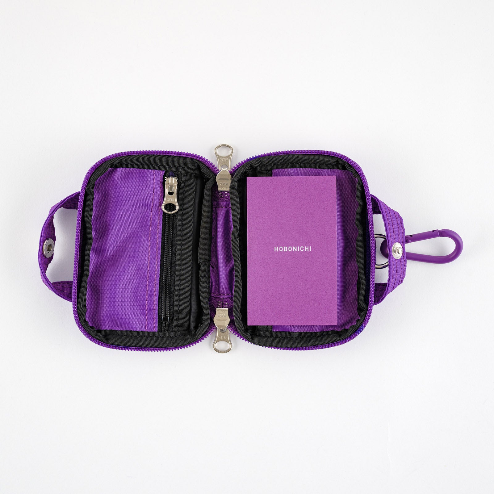 The Hobonichi Stroll Jr. mini wallet, crafted in collaboration with POTR by Yoshida & Co., is a compact yet functional accessory designed to match the Stroll techo cover. Available in vibrant green, carrot, and purple, the wallet features a silky nylon bonded material, double-zipper closure, and handy pockets for bills, cards, and coins. Inside, you'll find a small graph notebook made with Tomoe River paper, along with a detachable carabiner for versatile carrying options.