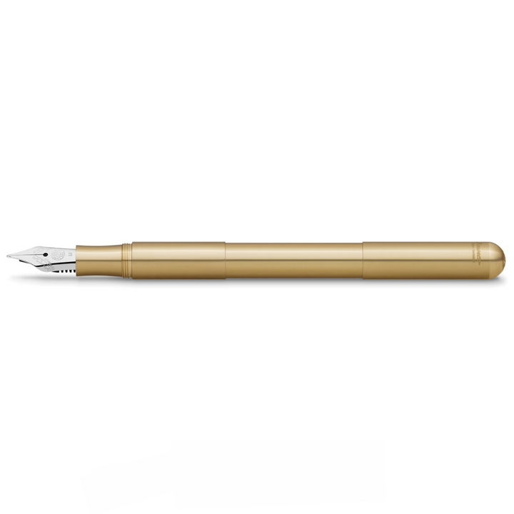 The Kaweco Supra Brass fountain pen features a durable brass material and a removable spacer to adjust its length. It resembles Kaweco Liliput Collection, but it is a full-sized pen for everyday writing. The pen has a chrome tone steel nib and comes with one Kaweco ink cartridge already inside. There is also an option to use a converter for the pen instead.