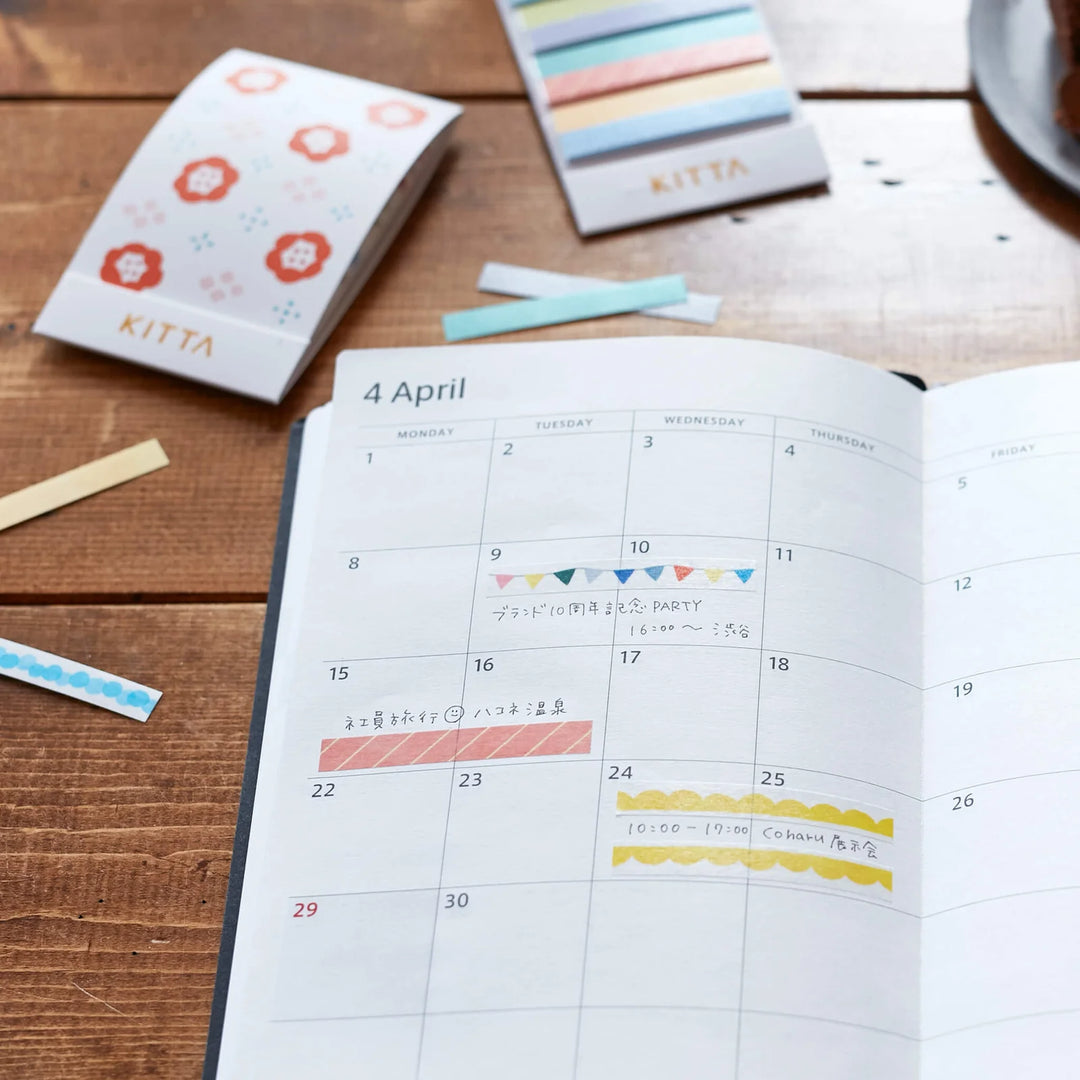 It doesn't take up much space, so it's 'portable.' It's pre-cut, so it's 'easy to use.' This is a compact masking tape. A narrow and easy-to-use masking tape with a width of 7mm. Recommended for decorating monthly planners and more.