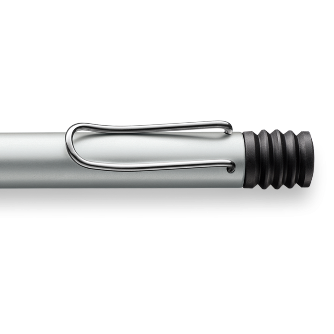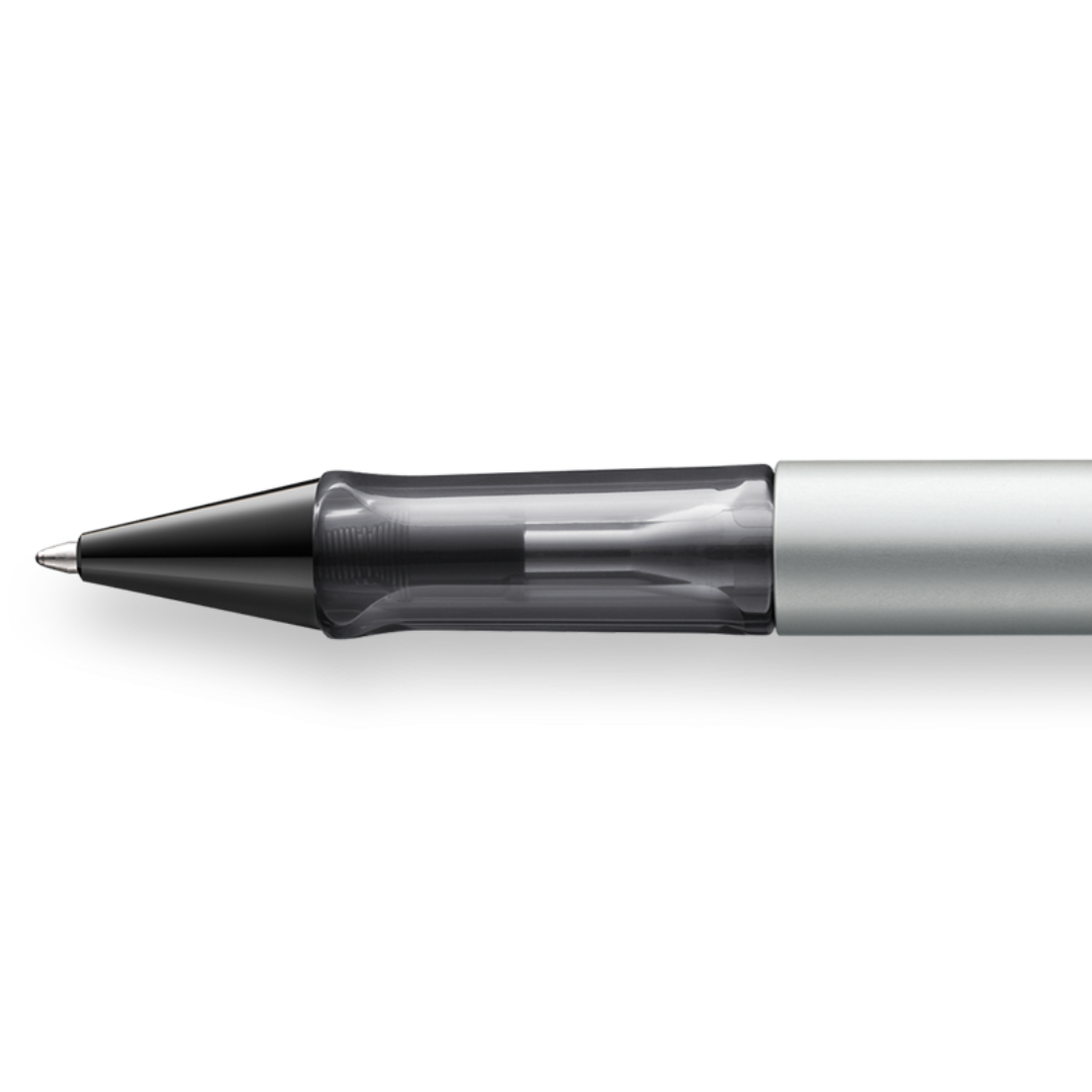 The LAMY AL-star is an attractive, young writing instrument that satisfies even the highest requirements. Made of feather-light robust aluminum, anodized in various colors. With distinctive transparent grip and spring-action metal clip. The ballpoint features an aluminum, shiny metallic anodized body, metal clip, ergonomic plastic grip, with refill LAMY M 16 M black.
