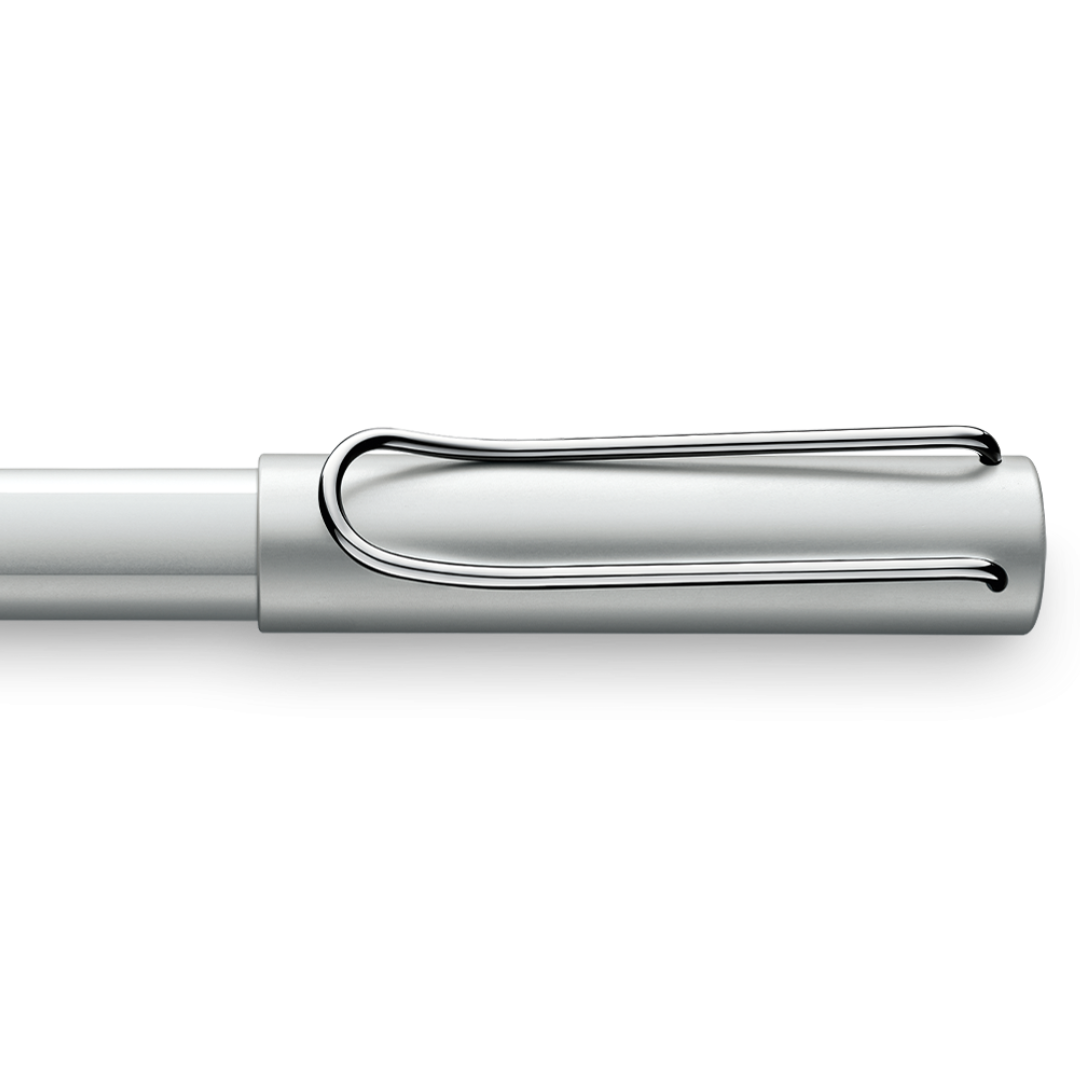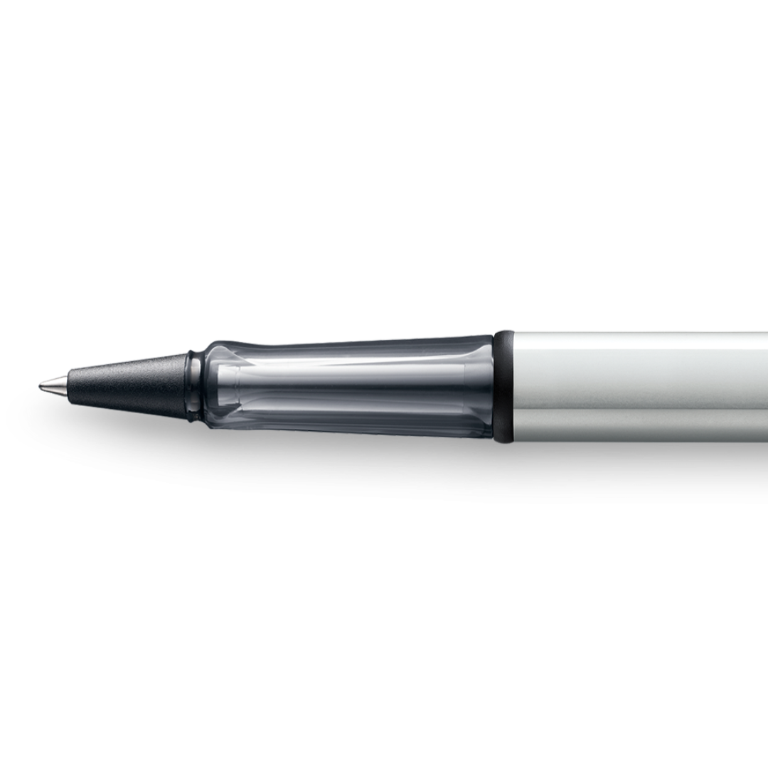 The Lamy rollerball pen combines the best of two classic categories; it's an ideal blend of the performance of both fountain pens and ballpoint pens. It's easy to operate like a ballpoint pen and has the beautiful flow of a Lamy fountain pen. The Al-star model is made of lightweight and durable anodized aluminum. It features a flexible chrome clip and a translucent plastic grip.