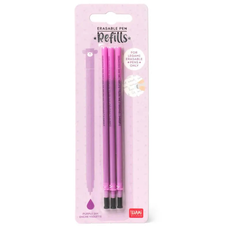 Choose from a rainbow of ink colours, including Blue, Purple, Pink, Orange, Green, Turquoise, Black, and Red. These refills are exclusively compatible with Legami Erasable Gel Pens.