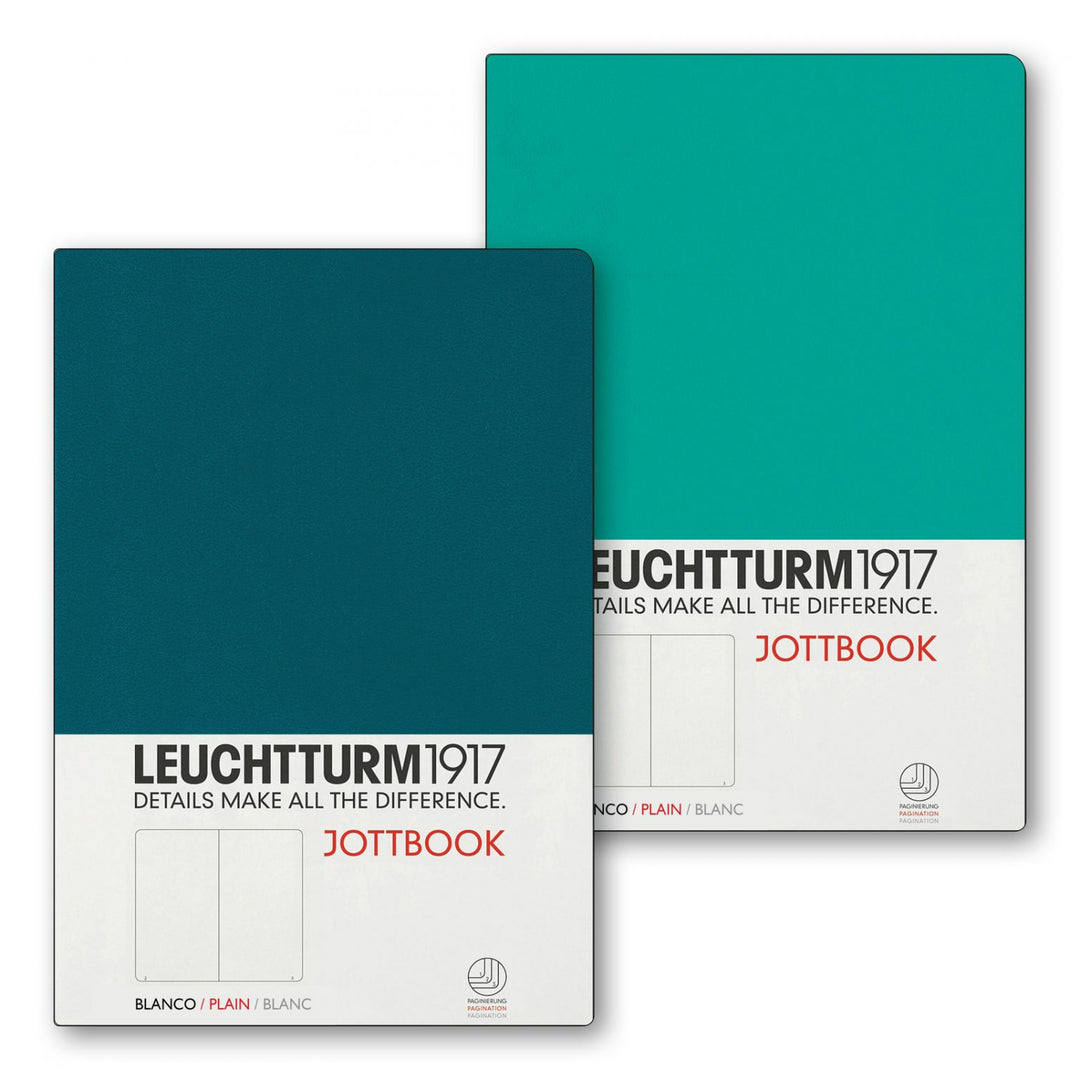 LEUCHTTURM - SOFTCOVER JOTTBOOK DOUBLE NOTEBOOK (A5), 59 NUMBERED PAGES, EMERALD AND PACIFIC BLANK